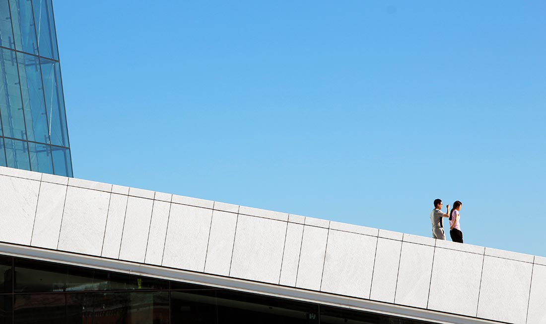 Stets begehbar und mindestens genau so beeindruckend ist das Opernhaus in Oslo. Ein einzigartiges Gefühl ist es, die steilen und glatten Schrägen der Anlage einfach so empor zu steigen. Toller Ausblick, tolle Architektur und innen wie draußen ein sehr abgerundetes Gesamtkunstwerk. Sollte man gesehen haben.