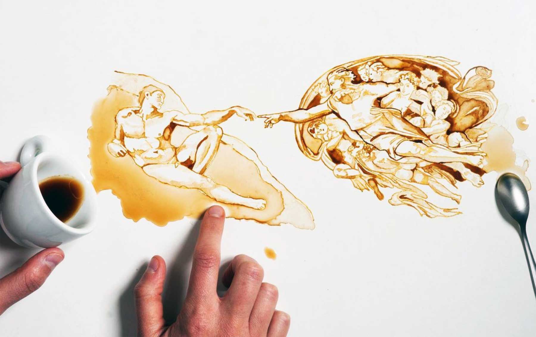 2015 und 2018 hatte ich bereits hier im Blog über die koffeinhaltigen Arbeiten von Giulia Bernardelli berichtet. Da wäre es nur konsequent gewesen, im Jahr 2021 ein Update zu geben – tja, knapp verpasst… Mittlerweile hat die italienische Künstlerin aber auch etliche Materialien abseits des Kaffees für sich entdeckt, so dass mitunter auch mit Likör oder Tomatensauce künstlerisch Wertvolles auf die Tischplatte gezaubert wird. Hier ein paar neuer Arbeiten von ihr!