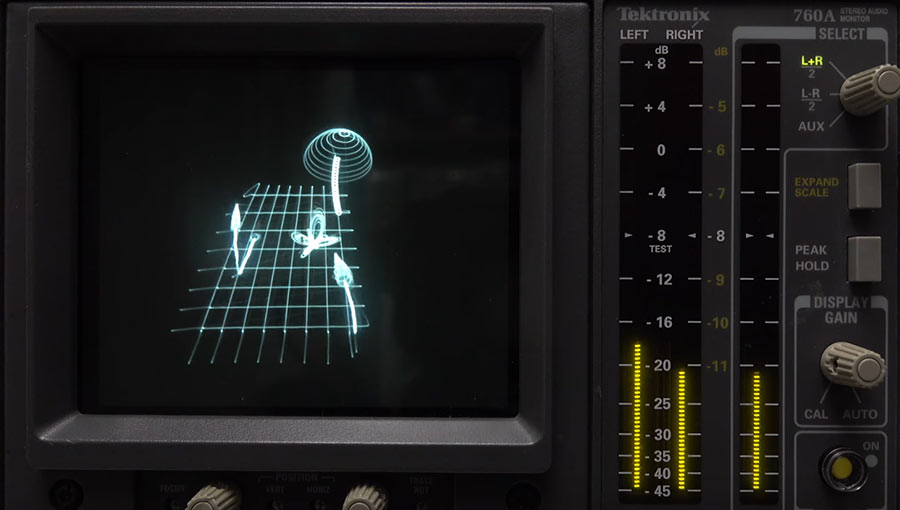 „An oscilloscope can be made to display shapes by playing sounds into it. Making music from these sounds while simultaneously drawing images with those sounds takes things to another level.“