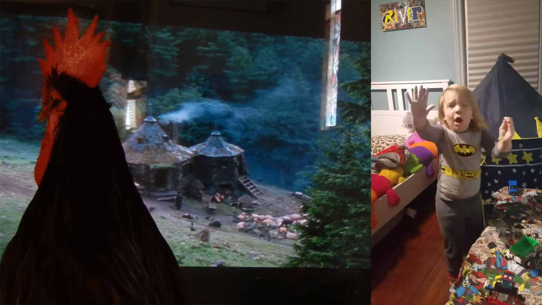 Ein Kinderspielfilm ist auch dieser „Harry Potter“-Streifen, den der Haushahn sich gemütlich anschaut. Stichwort: „wait for it“.