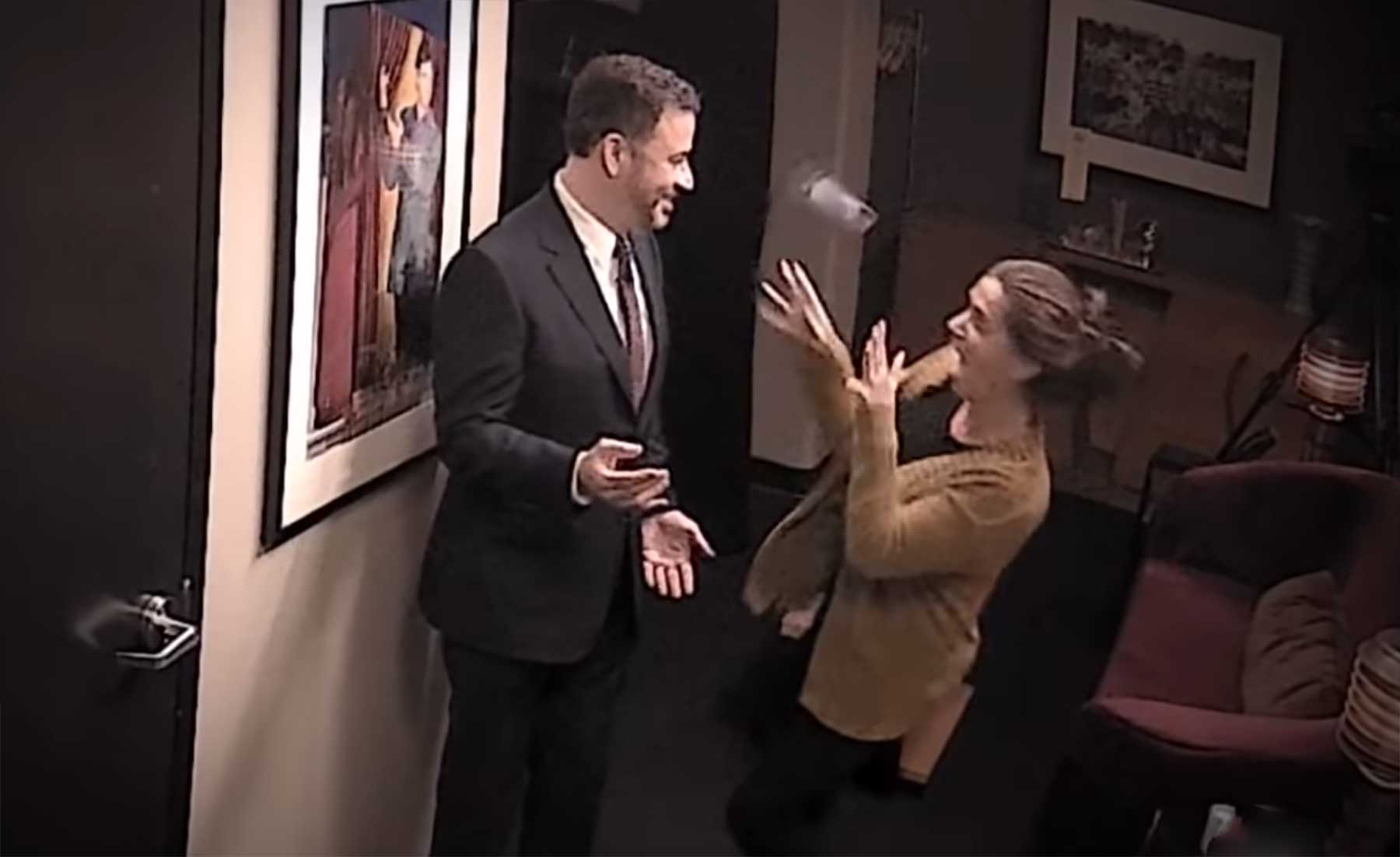 Genau, wie das hier. Also, im Netz rumgegangen, denn bei Jimmy Kimmels Wachsfigur geht wenig, die steht fest. Aber auch so ein koordinierter Streich fürs Fernsehen birgt so seine Portion Montagsgefühle.