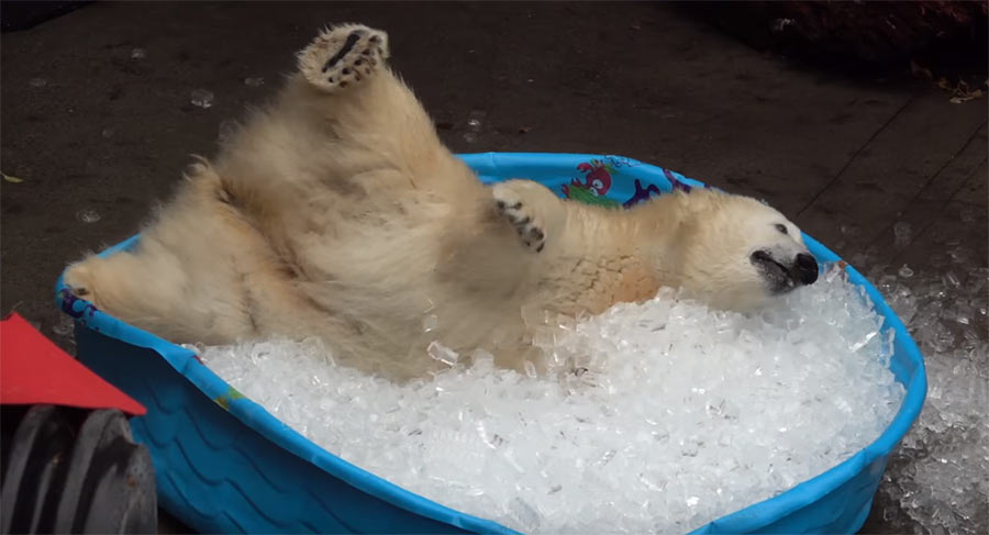 Zu ekelig, zu fies, zu traurig? Okay, dann etwas Abkühlung zum Schluss. Winter is coming. Aber bis er wirklich da ist, bekommen Eisbären Swimming Pools mit Eiswürfeln geschenkt. Yay!