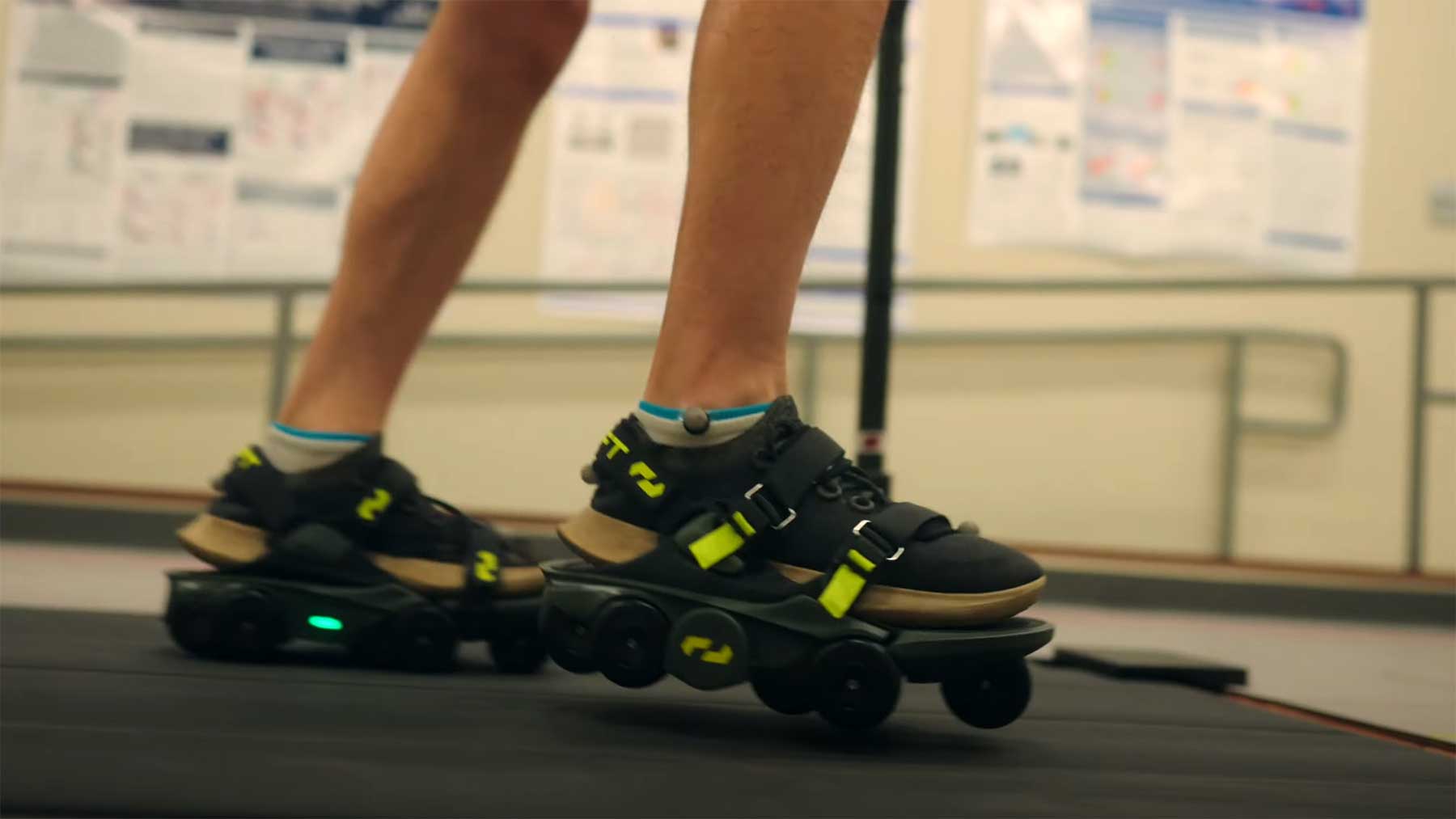 Das sieht aus wie in einem Science-Fiction-Film, was Shift Robotics hier zeigt. Die „Moonwalkers“ sind Schuhe bzw. Schuh-Aufsätze bzw. Schuh-Untersätze, die aussehen wie Rollschuhe, aber mittels smarter Technik lediglich den üblichen Gang beschleunigen. Bedeutet: Man soll ganz normal flanieren, dabei aber pro Schritt eine größere Entfernung zurücklegen, da die Schuhe einen gleiten lassen. Moonwalken halt. Das muss sich seht seltsam anfühlen, wenn man das erstmals ausprobiert…