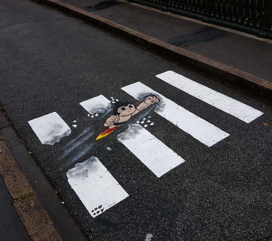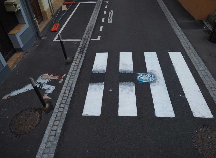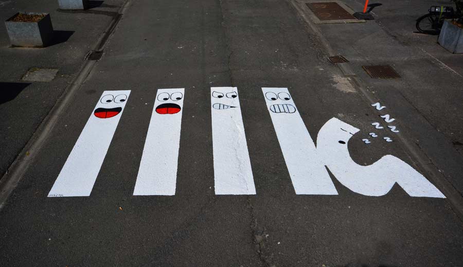 OakOak dürfte Blog-Lesern hier bekannt sein, habe ich doch bereits zwei Mal über seine Street Art berichtet und auch in der Bilderparade dürfte er das ein oder andere Mal vorgekommen sein. Jetzt hat der Franzose bewiesen, dass er die Langeweile aus dem Straßenverkehr nehmen kann, indem er mal wirklich die „Street“ bekünstelt hat. Denn bei ihm sind Zebrasteifen ein Ort der Fantasie und Kreativität – richtig so! Denn so fallen die am Ende auch den Autofahrern mehr auf und es gibt weniger Unfälle. Hoffentlich.