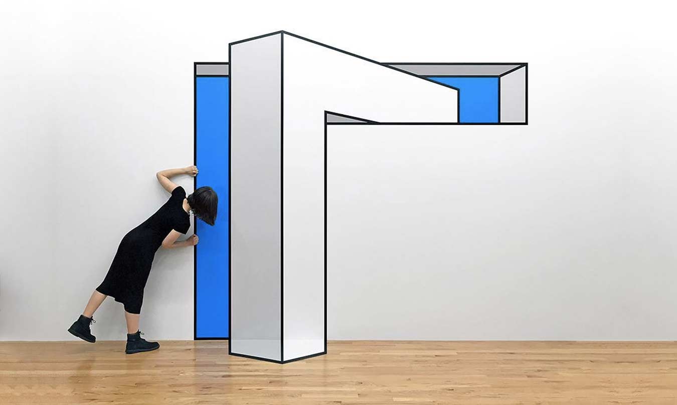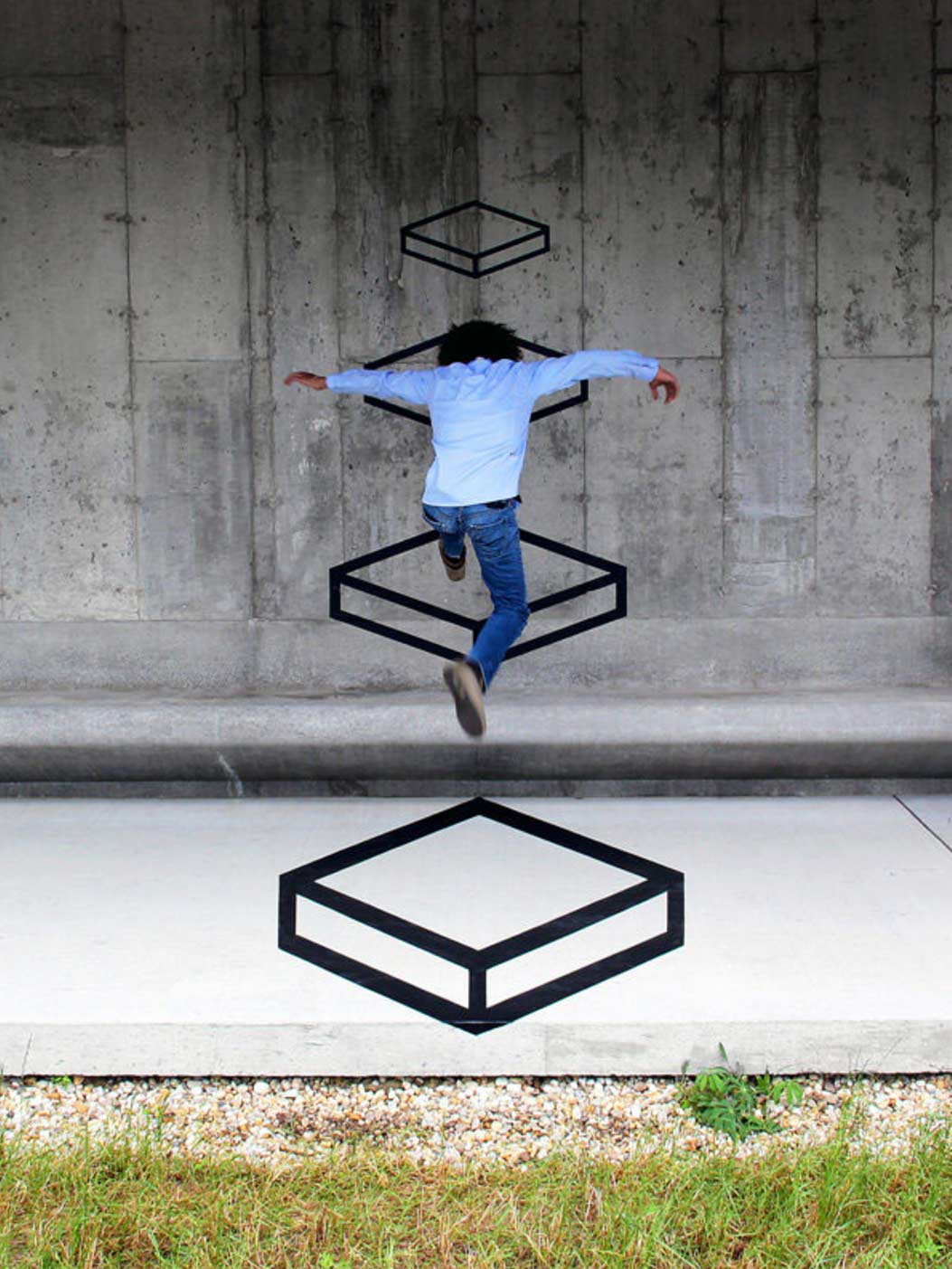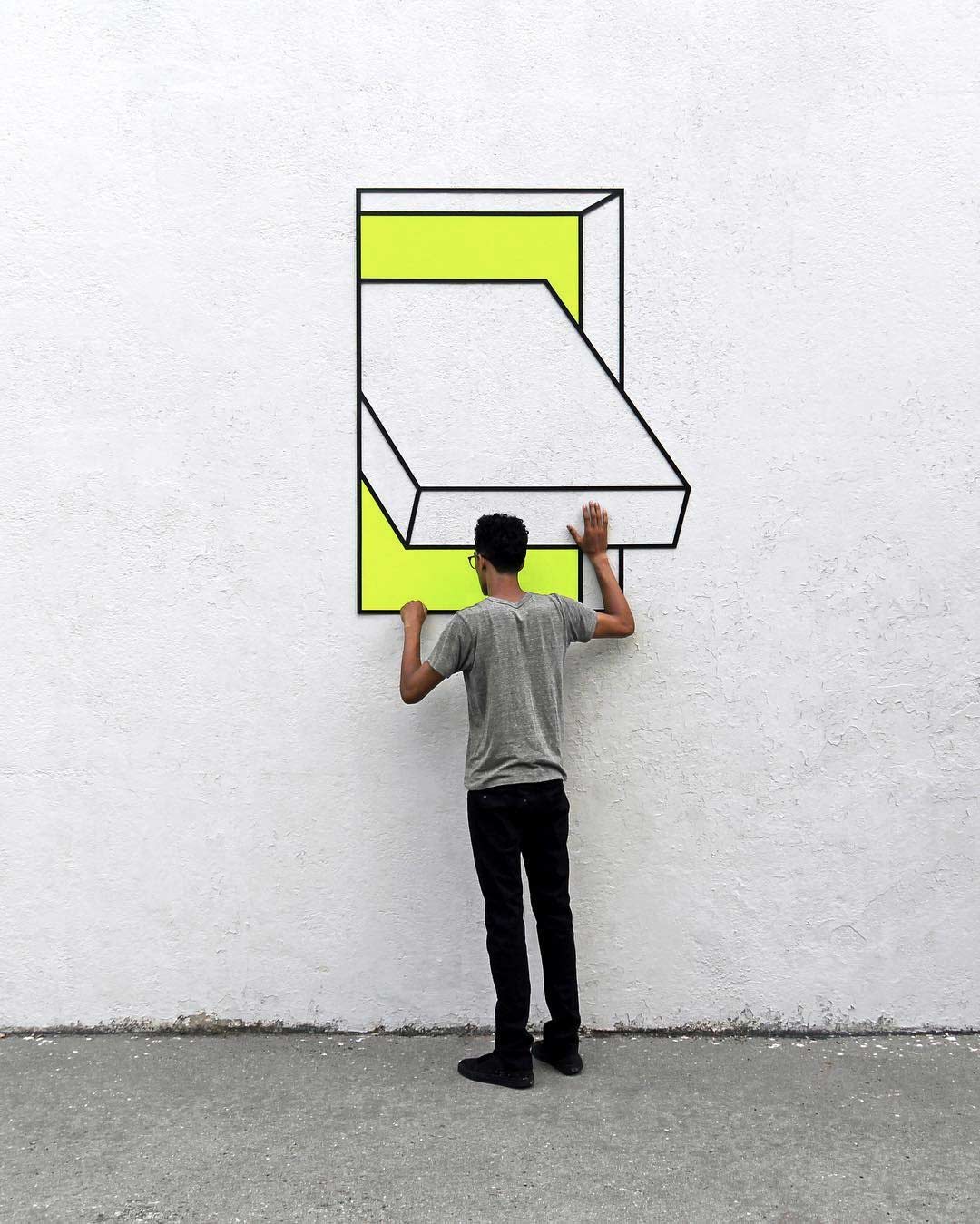 Vor sieben(!) Jahren hatte ich bereits etwas zu den Tape-Arbeiten von Aakash Nihalani geschrieben. Seitdem hat der New Yorker fleißig weiter geometrische Figuren an Wände und Böden gezaubert, die wunderbar mit unseren Synapsen spielen.