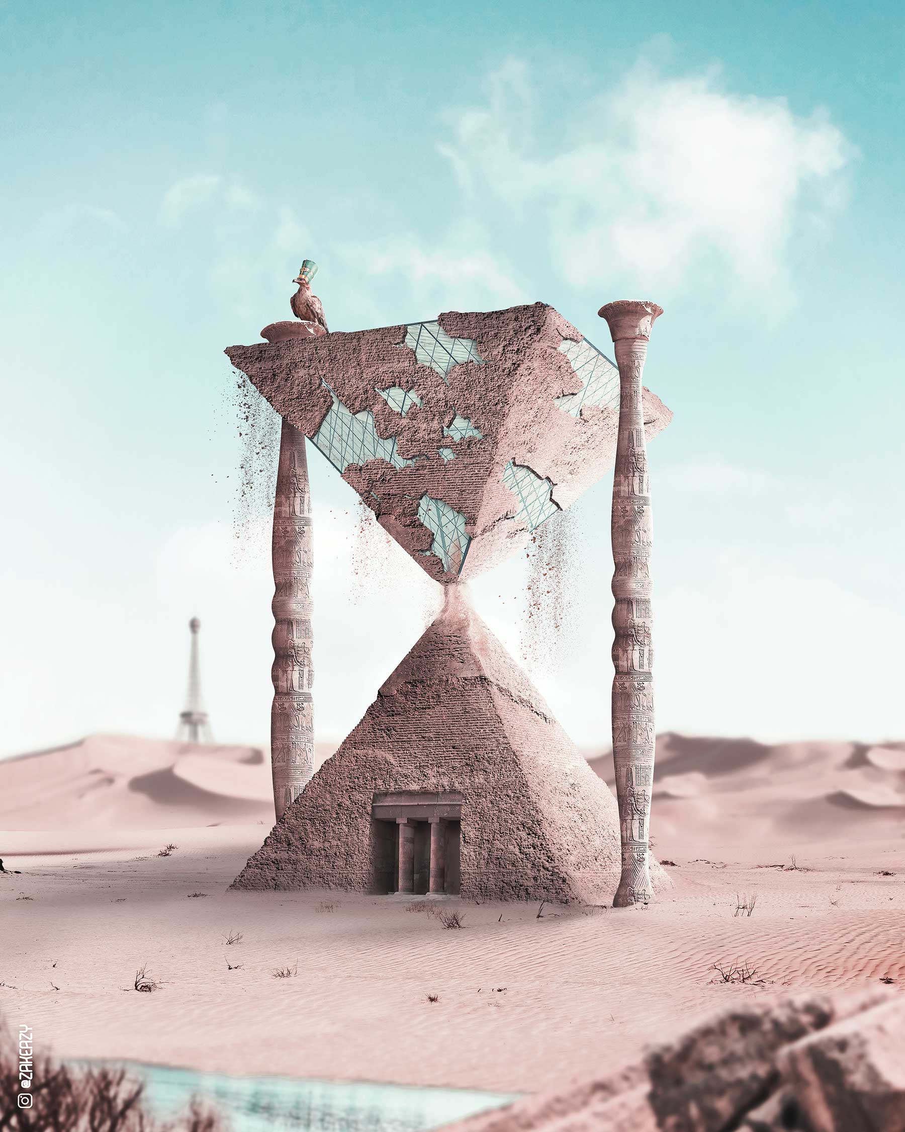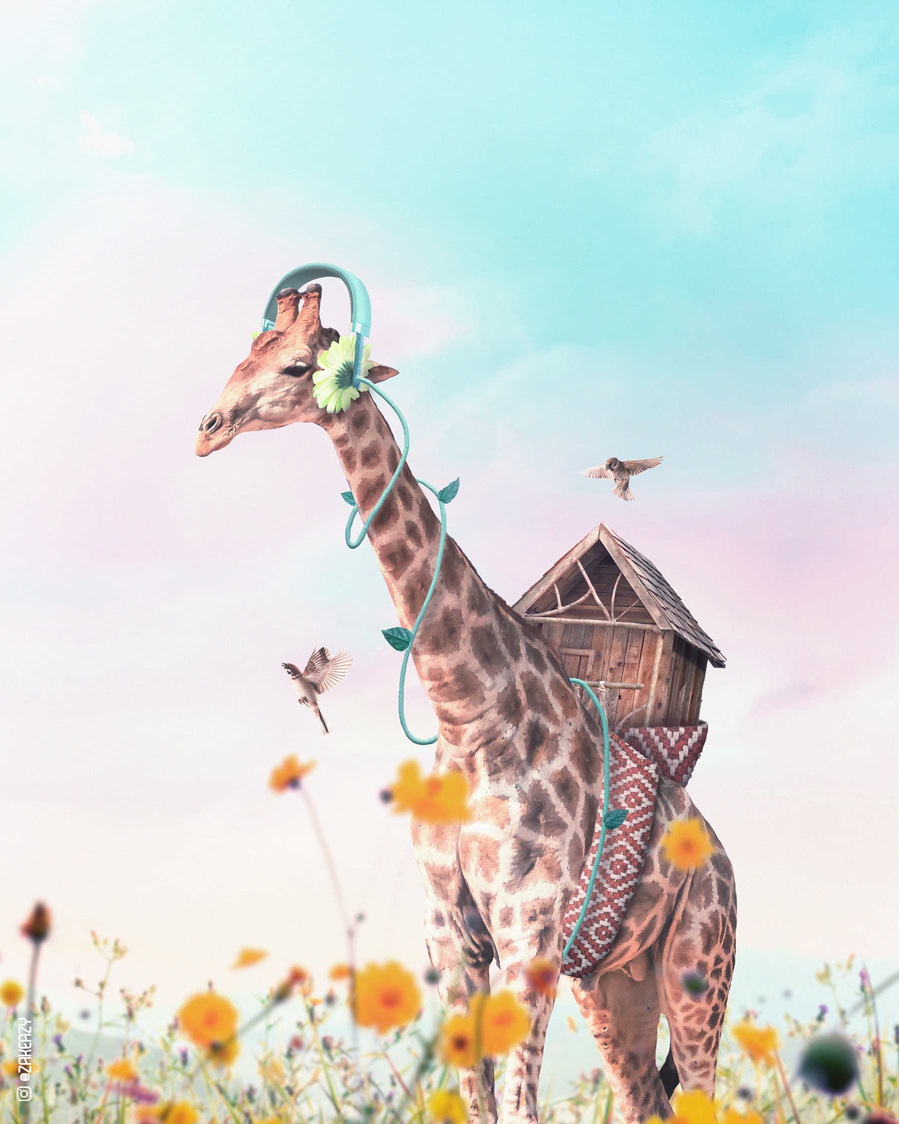 „I’m Zak Eazy, I’m from Lille in France and I love to create around architecture, nature and animals in a surrealistic style. I do it since 2019. I create all the images on Photoshop, I take different images in collaboration with photographers or from image banks to create one and unique image. I love the surrealism because it allows me to escape from the reality and add smooth and more joyful side to the thing we see every day. I love to use pastel colors to amplify this dreamy side on my creations. Each creations have a meaning to me. But I like to see in the comments or in the messages I receive how people interpret my creations in many ways.“
