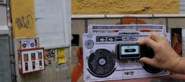Sehr coole Aktion des Berliner Street Artists Sweza, der kleine Boombox-Plakate an die Wänder der Hauptstadt platziert, die mit QR-Codes versehen sind. Handy drauf und schon spielt die Papierorgel Musik ab.