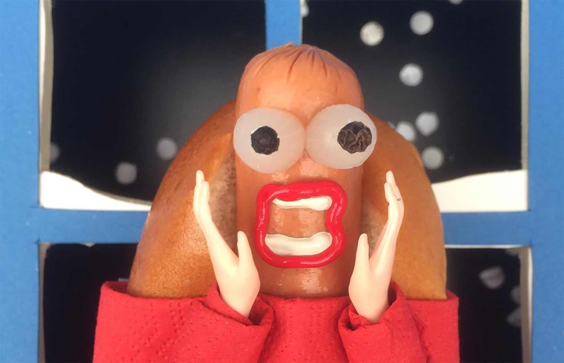 Designer und Food Stylist Erik Vernieuwe hat sich mit Fotograf und Art Director Kris De Smedt zu „BURP“ zusammengetan. Eigentlich haben sie sich auf hochprofessionelle Food-Fotografie spezialisiert, aber nebenbei lassen sie dem Spaß freien Lauf, indem sie Würste mit Augen und Kreativität beleben. So ergeben sich etliche Hot-Dog-Nachahmungen bekannter Popkultur-Szenen aus Film, Musik und Kunst. Klasse!