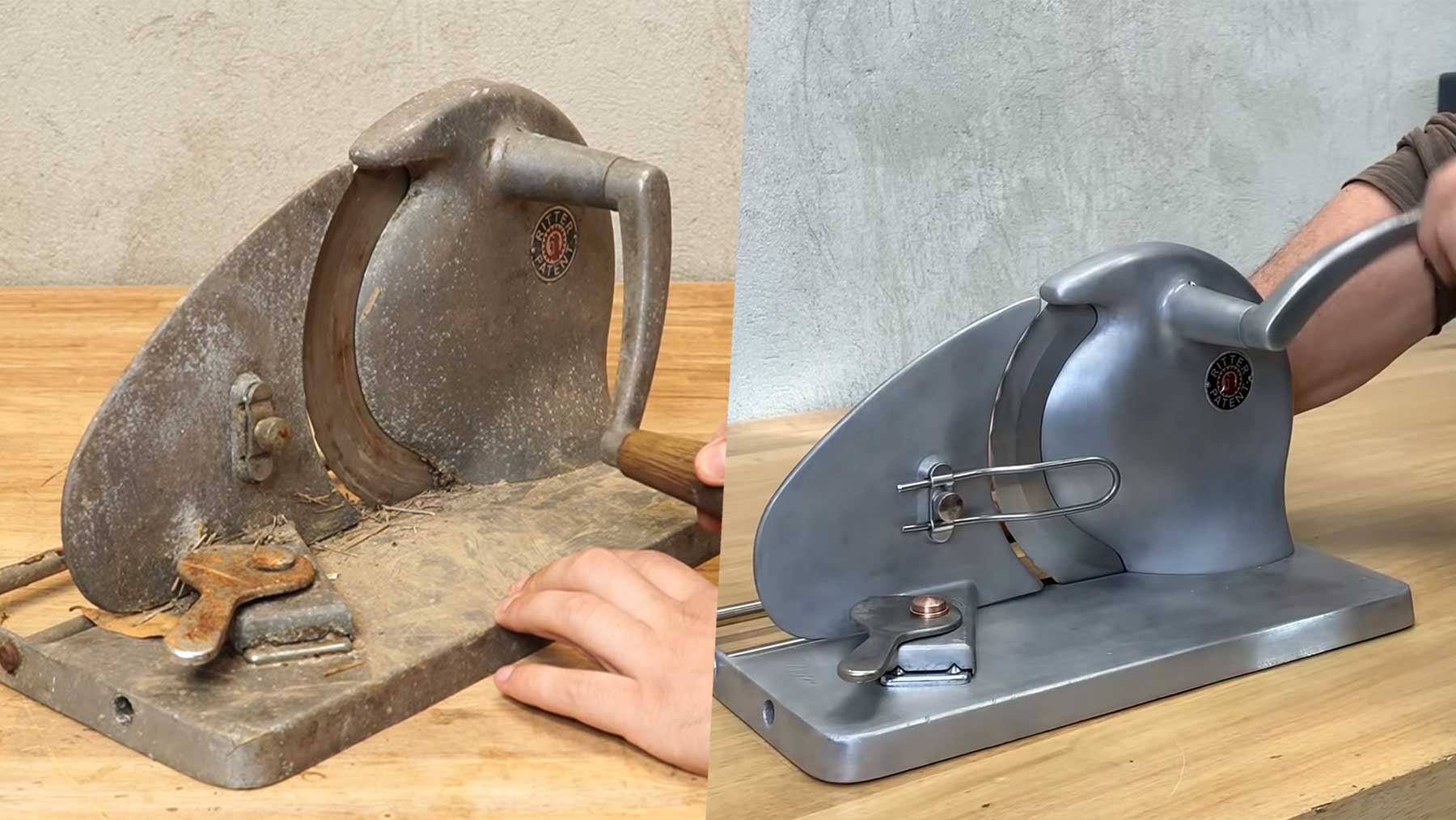 LADB Restoration hat einer alten, verrosteten Brotschneidemaschine zu neuem Glanz verholfen. Schon interessant, was man, mit viel handwerklichem Geschick und etwas Zeit aus so alten Dingern rausholen kann – da kann sich manch einer noch eine Scheibe von abschneiden, höhö…!