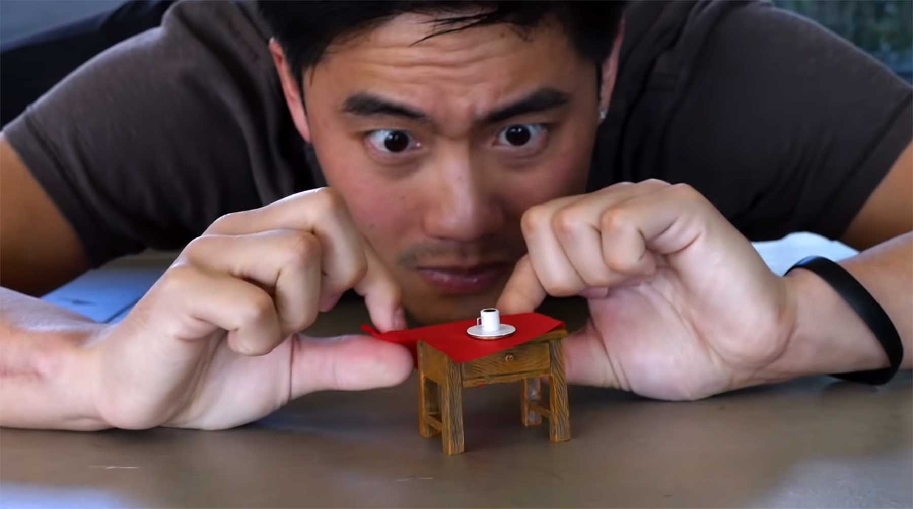 Der gute alte Zaubertrick, eine Tischdecke unter Zeugs wegzuziehen, das dann auf „magische“ Weise stehenbleibt, ist ja eigentlich nur allersimpelste Physik und von jedem binnen Sekunden zu erlernen (s. Mike Boyds drastische Lernkurve 2016). Aber wieso sich nicht einfach mal einen Spaß draus machen und schauen, was man auf originelle Weise noch draufsetzen kann – auf den Tisch, nur um die Decke darunter wegzuziehen? Ryan Higa aka nigahiga hat genau das getan und zeigt uns rund sechs Minuten voller Tischdecken-wegzieh-Magie. Wow.