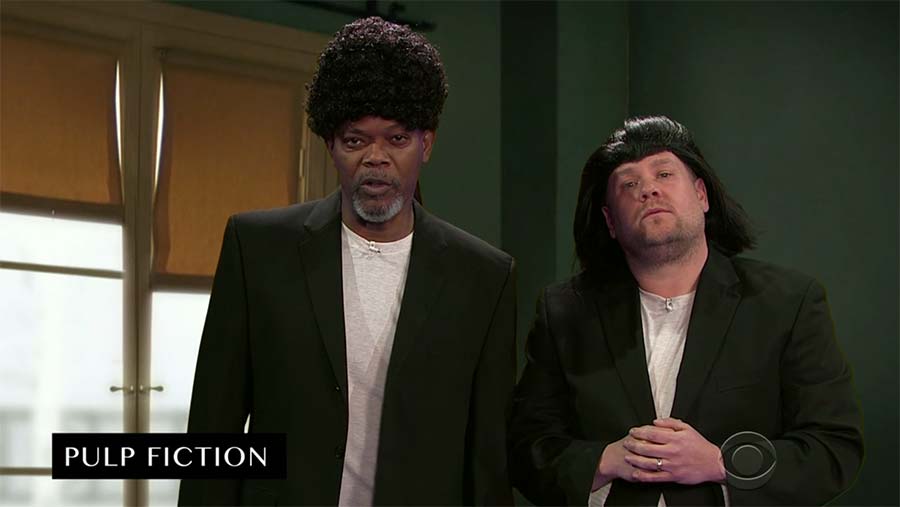 „Samuel L. Jackson and James Corden act out snippets from Samuel’s legendary film career, covering everything from ‚Pulp Fiction‘ to ‚Jurassic Park‘.“
