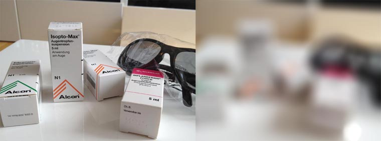 Neben Augentropfen habe ich auch eine Plastik-Sonnenbrille erhalten. Die soll ich Freitag mitbringen, um das erste operierte Auge zu schützen. „Sie können aber auch eine eigene Sonnenbrille ohne Stärke mitnehmen“. Oha, das ist wirklich neu. Ich kann mir ab dann für 3 € stylische Angeberbrillen kaufen! WENN alles glatt läuft in drei Tagen. Drückt mir die Daumen…