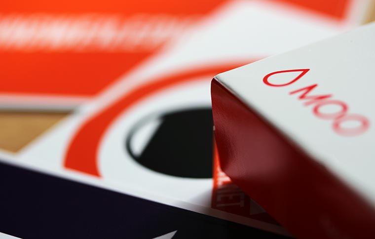 „Wir von MOO möchten unseren Kunden dabei helfen, sich mit wunderschönen und professionell hergestellten Druckerzeugnissen und Werbematerialien wie Premium-Visitenkarten, Flyern, Postkarten oder Briefpapier von der Masse abzuheben.“