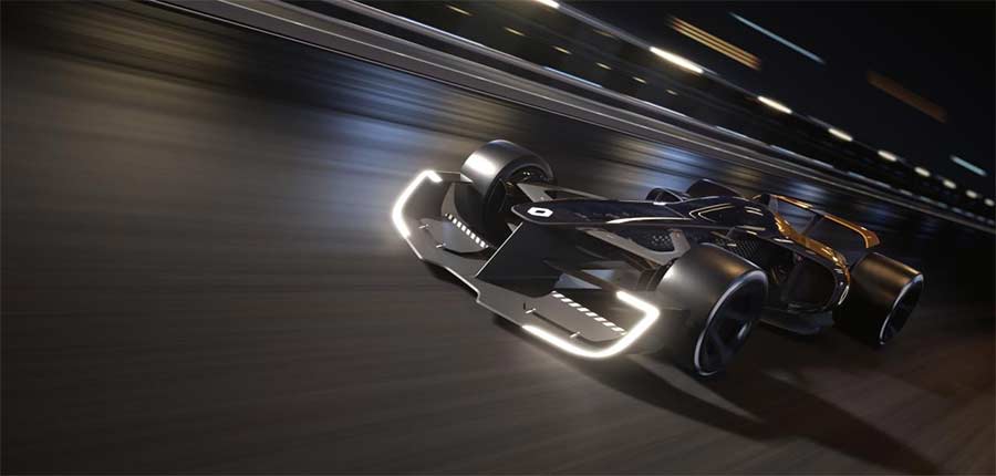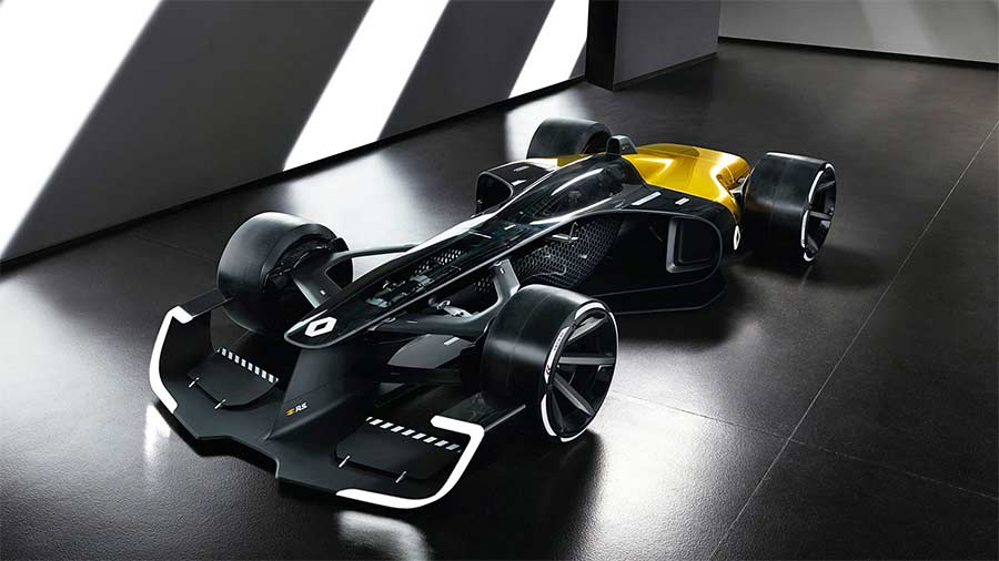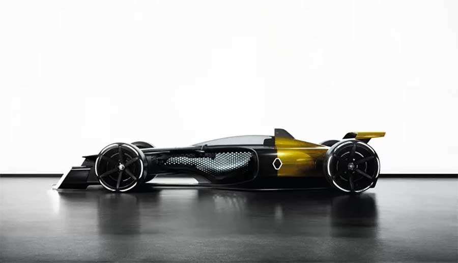 „R.S. 2027 Vision puts the emphasis squarely on the human factor, the entertainment factor. With its 3D-printed transparent cockpit, in tough, lightweight material, R.S. 2027 Vision let spectators actually get a look at the driver behind the wheel. And with his transparent helmet, the driver loses that faceless appearance: spectators can see his reactions, as with any other sportsman.“