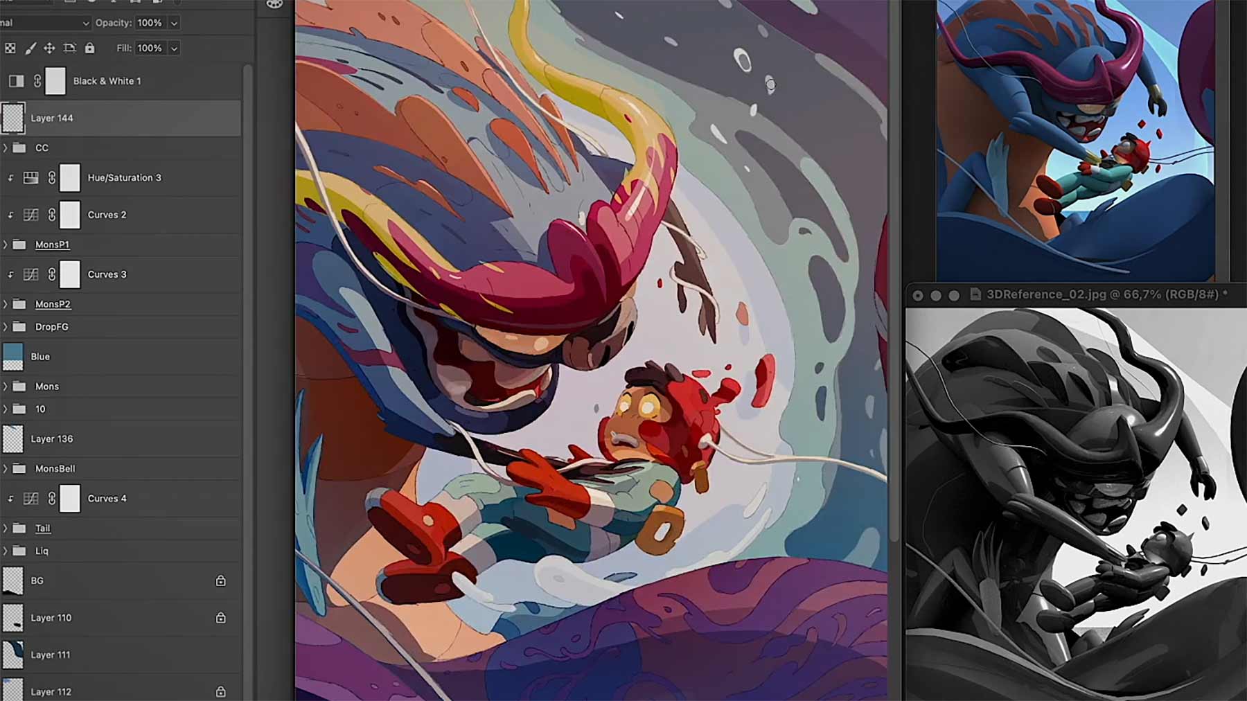 Der iranische Art Director Amin Faramarzeyan aka Amin Fara zeigt uns, wie er sein Motiv „Disintegration“ erstellt hat. Von der Skizze bis zum… naja, digitalen Mehrfachabbild. Die 3D-Modellierung hätte ich jetzt persönlich nicht gebraucht, aber gut…