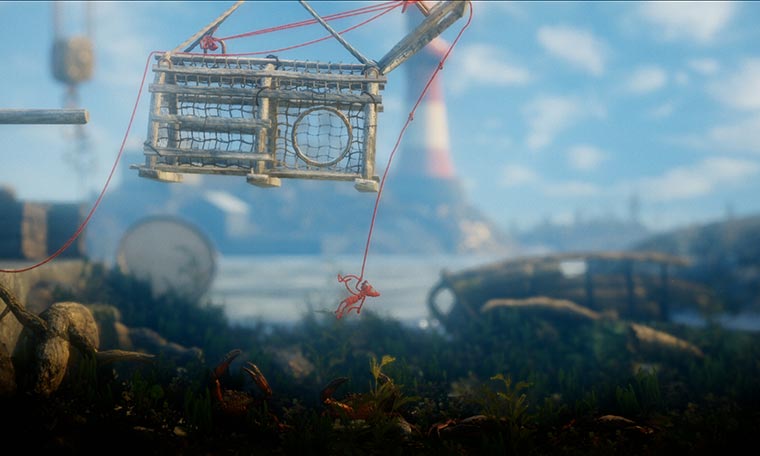 Natürlich darf ein Spiel nicht frustrieren, aber die ein oder andere harte Nuss hätte ich mir schon gewünscht. Und da war dann zum Beispiel diese eine Szene mit dem Krabbenkäfig, in der ich minutenlang versucht habe, das Teil irgendwie zum Fallen zu bringen. Faden anheften hier, Herumschwingen dort – nichts. Dann irgendwann habe ich plump durch Springen, Glück und Timing die Krabben überwunden und war weiter – doch wie genau, wusste ich nicht. Mit dem Korb hatte ich jedenfalls nicht wirklich etwas gemacht…