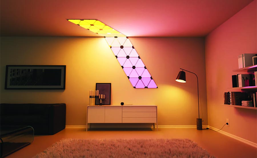 Oh, die finde ich ja klasse! Die „Aurora“ von Nanoleaf sind dünne Dreiecke, von denen man bis zu 30 Stück frei miteinander verbinden und in 16,7 Millionen Farben leuchten lassen kann. Per App oder über Siri / Alexa gesteuert. Schauen schick und minimalistisch aus – nur das hin und wieder anzubringende Ladekabel könnte visuell nerven…