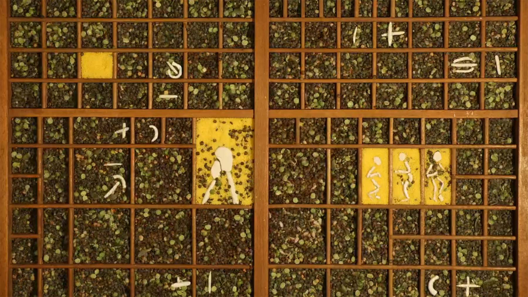 Ein Setzkasten, viel Sand, Steine und Fantasie – das sind die Hauptzutaten, die Bernie Krause für seinen Stopmotion-Film „Cuicuicui“ verwendet hat. Das Ergebnis ist abstrakt, aber durchaus kunstvoll.