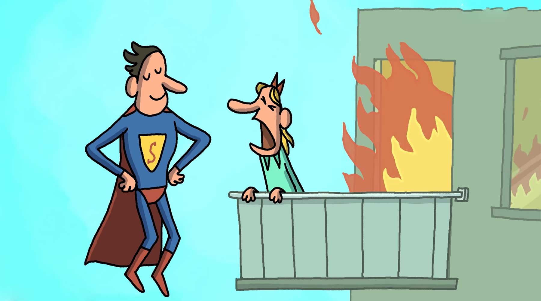 „The Burning Apartment“ heißt der neue Animationssketch aus der „Cartoon Box“ von Frame Order. Wer die Reihe kennt, weiß, wie gnadenlos gnadenlos sie sein kann, wenn die letzten Sekunden des Videos anbrechen und so etwas wie Logik ins Spiel kommt. Wobei, was soll schon schief gehen, wenn Superman vor Ort ist?!