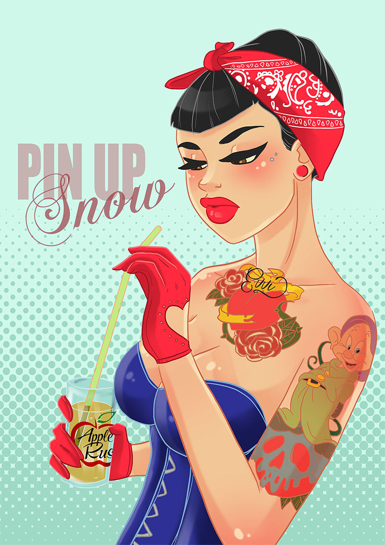 Das kreative Spiel mit klischeebehafteten Prinzessinnenfiguren aus dem Hause Disney kommt immer schön. Vor allem, wenn man möglichst kontrastreich arbeitet, und dem naiv-unschuldigen Auftreten der Charaktere entgegenschlägt. Das hat bereits mit den Zombie-Prinzessinnen, fucked-up Charakteren oder auch den Fairytale Mugshots sehr gut funktioniert.