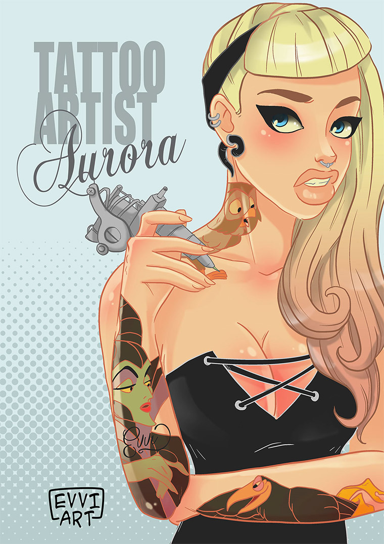 Eine auch auf künstlerischer Ebene sehr gelungene Reihe bietet uns der italienische Illustrator Emmanuel Viola mit seinen tätowierten Prinzessinnen. Dabei konzentriert er sich bei den modernen und hübsch anzuschauenden Hipster-Varianten keineswegs nur auf Disney, auch andere Popkulturgrößen, wie bspw. Prinzessin Leia sind auch darunter. Wobei die ja mittlerweile eigentlich auch eine Disney-Prinzessin ist. Verrückte Welt…