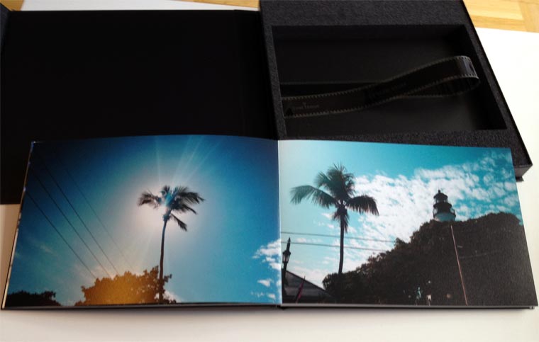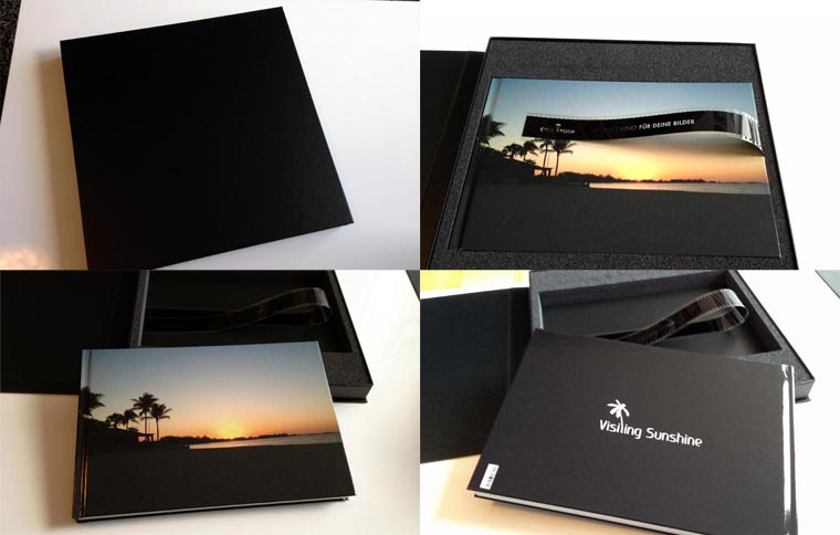 Das Cinebook kommt in einer edlen Geschenkverpackung daher. Der schwarzer Karton mit Magnetverschluss beherbergt innen eine kreative Fotofilm-Schlaufe um das Buch heraus zu heben. Das macht schon was her.