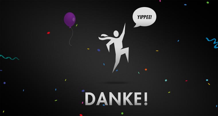 Am Ende wird man dann auf die Cinebook-Seite geleitet. Ein buntes „Danke“ erscheint, nun heißt es Warten. Aber so lange Warten ist überhaupt nicht angesagt. Am 3. April um 00.08 nachts habe ich die Bestellung abgegeben. Am selben Tag um 14:45 kam die Mail-Benachrichtigung, dass das Paket bereits unterwegs sei. Anderthalb Tage später war es da. Ungemein schneller Versand, vor allem, wenn man bedenkt, dass das Produkt ja auch erst einmal gedruckt werden muss.