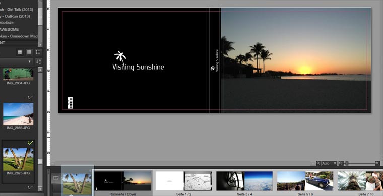 Zunächst lädt man dann eine Software herunter. Das auf Adobe basierende Programm greift auf Bildordner zu, assestiert bei der Frage, welche Bilder bereits eingesetzt wurden, bietet Layout-Vorschläge und vereinzelte Basis-Bearbeitungsfunktionen.