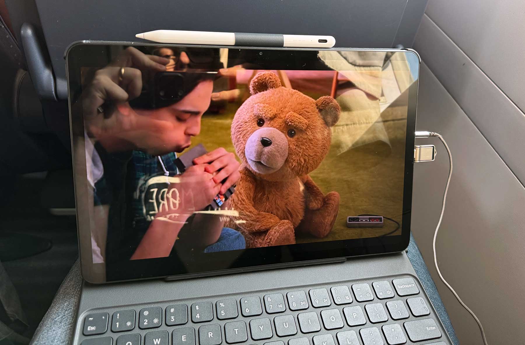 Das Prunkstück des Gerätes ist der Bildschirm. Bei einer Auflösung von 2560 x 1600px Pixeln ist eine adaptive Bildfrequenz von bis zu 120Hz möglich und 68,7 Milliarden Farben können darauf dargestellt werden. Ich nutze mein Tablet zum Großteil für das Anschauen von Serien oder YouTube-Videos unterwegs, zum Beispiel im Zug. Das hat auf meiner „Probefahrt“ nach Berlin gut funktioniert und die Helligkeit von bis zu 600 nits ist auch bei seichtem Sonnenschein auf dem Display noch in Ordnung. Dem Sehvergnügen stand bei mir eher die enorme Spiegelung des Bildschirmes im Wege. Da habe ich aber auch selbst beim dreimal so teuren Surface meine Probleme mit. Ansonsten dürfte man im Freien aber gut zurechtkommen. Videos mit 2,5K-Auflösung schauen super aus, das macht schon Laune, auch wenn der Schwarz-Wert etwas dunkler sein könnte.
