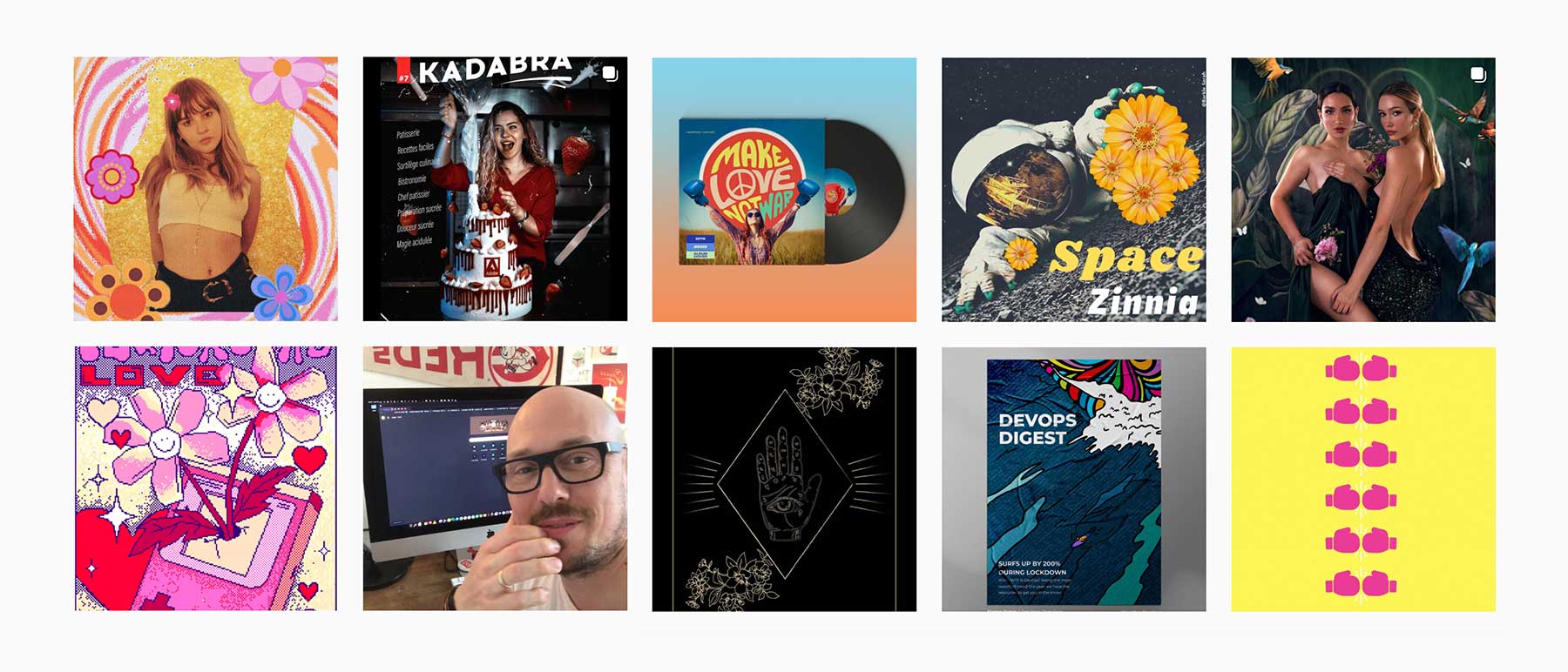 Tatsächlich war ich nicht der erste Mensch auf der Welt, der den „Inspiration Generator“ ausprobiert hat. Wer vor oder nach dem eigenen Versuch mal schauen möchte, was andere so gemacht haben, kann den Hashtag #BeatTheBlank auf Instagram, Behance oder auch bei tiktok durchforsten. Hier mal ein paar meiner Meinung nach gelungene Umsetzungen, die auf den drei im wahrsten Sinne des Wortes zusammengewürfelten Begriffen basieren: