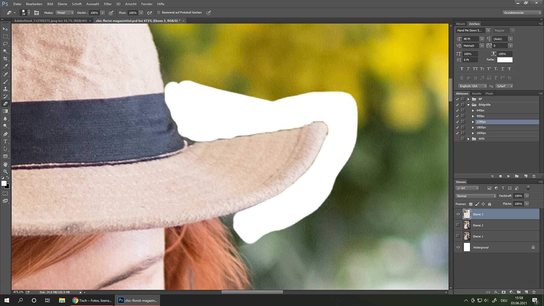 Dann habe ich in Photoshop Bilder zugeschnitten, retuschiert, Bildebenen geschaffen, Schriftarten durchforstet, und so weiter…