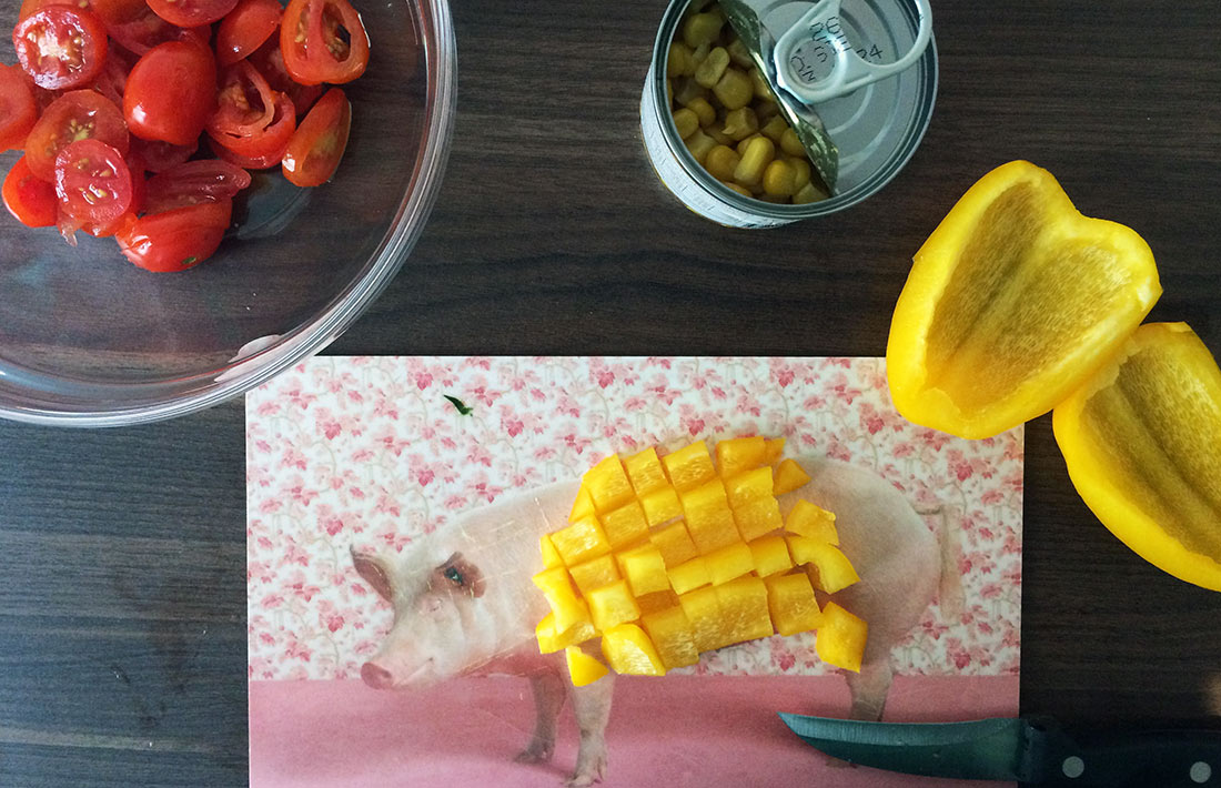 6. Bemerken, dass die Freitag gekaufte Paprika von Innen ekelig ist und glücklich sein, dass man noch eine andere hat, die zwar gelb dafür aber gesund ist.