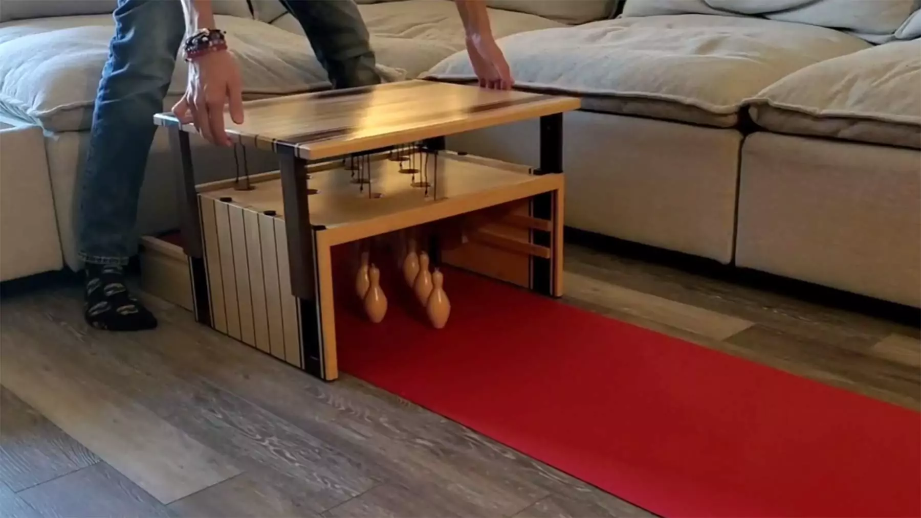 Introducing Duckling pin, a low-tech bowling lane that looks just like a typical chest-coffee table.