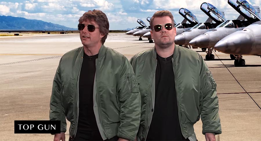 „James Corden and Tom Cruise act out snippets of Tom’s legendary film career, with scenes from ‚Top Gun‘ to the ‚Mission: Impossible‘ series.“