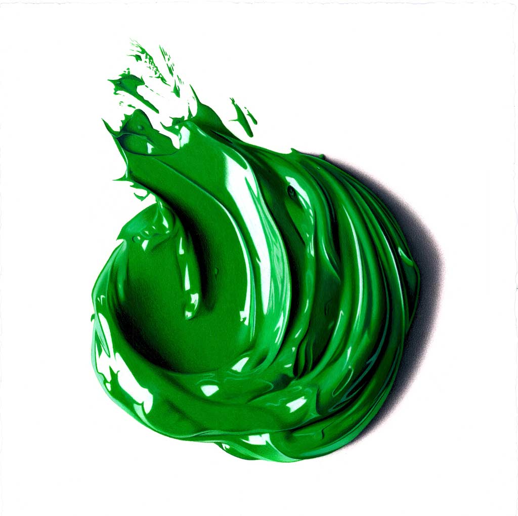 Die australische Künstlerin CJ Hendry hatte ich bereits einige Male zu ihrer ultrarealistischen Zeichenkunst hier im Blog gefeatured. Nach 50 Essen in 50 Tagen, Luxusmarkeneinkaufstüten sowie detailgetreuen Luxusobjektabbildungen zieht es sie jetzt in die Welt der Farben. Nicht nur, weil die Motive der Reihe „Complimentary Colors“ mal nicht schwarz-weiß gehalten sind, sondern auch, weil sie Farbe zeigen. Kleckse, Pinselschwünge und sonstige Rudimentärheiten der Malerei. Aber alles fein mit Buntstift inszeniert. Groß!