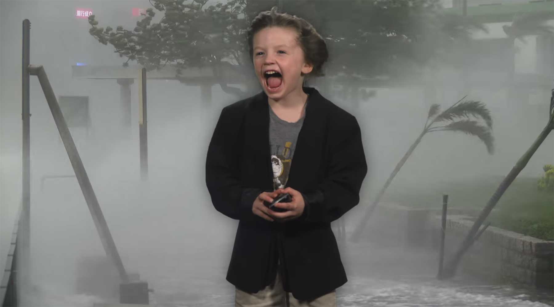 Zunächst einmal finde ich es eine sehr schöne Idee, dass Kindergartenkinder wechselnd einen Wetterbericht abgeben. Dann natürlich, dass Eltern dabei behilflich sind, das Ganze umzusetzen. Nur doof, dass Cardens Vater Spezialist für Video-Produktionen ist und dem Sohnemann ein professionelles Setup erstellt hat. Also doof, für alle anderen Kinder und Eltern, die nun ob dieser Messlatte bei ihren eigenen Umsetzungen verzweifeln dürften – aber umso unterhaltsamer und cooler für uns und Carden selbst. Kachelmann wäre stolz auf dich, Kind!