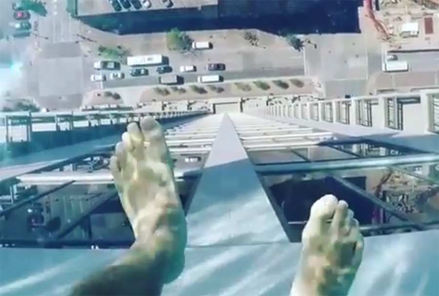 Der Market Square Tower hat einfach mal einen Pool mit Glasboden balonartig an den 42. Stock gehangen. Wieso auch nicht? Ich sage euch wieso nicht: DAS IST VERDAMMT HOCH! Welcher lebensmüder Mensch geht denn freiwillig da hin? Meine Höhenangst bekommt trotz 8 Zentimeter dickem Acrylglas und tausenden Kilometern Luftlinie beim Anblick dieses Videos einen Anfall…