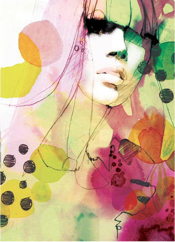 Schöne Bilder der Berliner Designerin Ekaterina Koroleva. Eine farbenfrohe Mischung aus Wasserfarbgemälde und illustrativen Konturen. Gefällt.