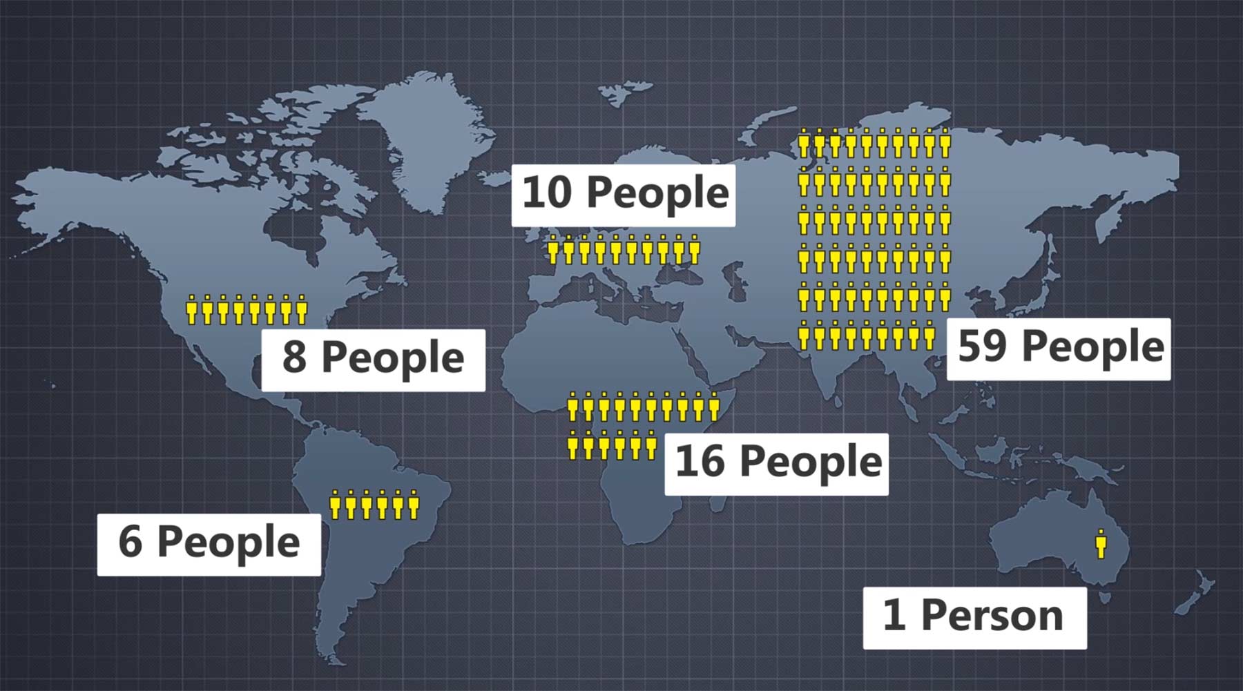 Wir haben 100 Leute gefragt: Wie schafft man Verdeutlichung durch Reduktion? Zum Beispiel, indem man die Gesamtbevölkerung unserer schönsten Erde, die wir haben, auf 100 herunter bricht. Eigentlich nichts anderes, als prozentuale Angaben zu machen, aber ihr wisst schon, das wirkt weniger „catchy“. RealLifeLore hat das statistische Spielchen gespielt und zeigt uns im Video, wo wie viele Menschen unterschiedlicher Variationen zu finden wären. Ich würde als erstes ja dafür plädieren, dass die 100 an einen Ort zusammenkämen…