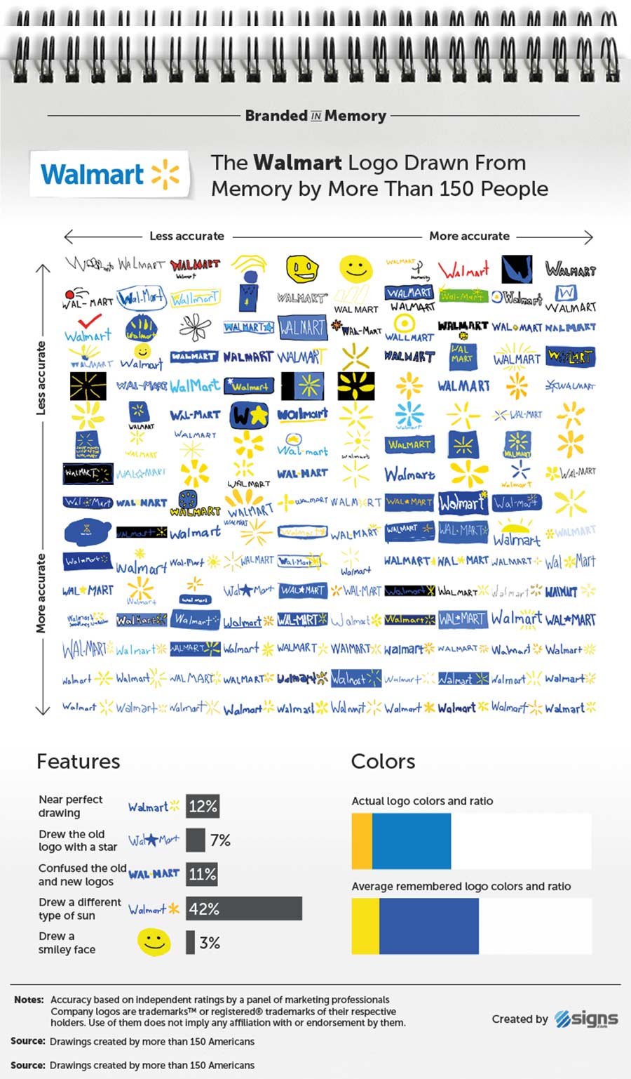 „The logos of global corporations like Apple, Starbucks, and Foot Locker are designed to create instant brand associations in the minds of billions who see them every day. But how accurately can we remember the features and colors of these famous symbols?“