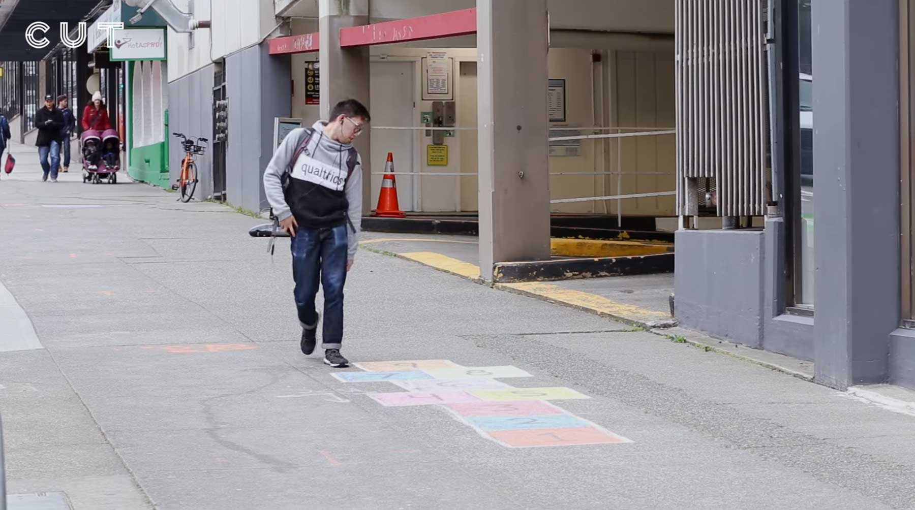 Cut hat ein gutes altes „Himmel und Hölle“-Spiel (oder auch „Hinkefuß“ oder „Hinkelstein“ oder whatever) auf einen Bürgersteig gekritzelt und zehn Stunden gewartet, was die Passanten so damit machen. Eine etwas andere Sozialstudie, die sowohl zeigt, wie viele Leute das Spiel überhaupt noch kennen, als auch, wie sehr man in der Teil-Öffentlichkeit noch dem inneren Spieltrieb nachgeht). Neben den Reaktionen auf das überraschende Kreidespiel sind vor allem die Daten interessant: Doch rund ein Zehntel der Leute ist gehüpft – ich war von weniger ausgegangen. Sehr schön!
