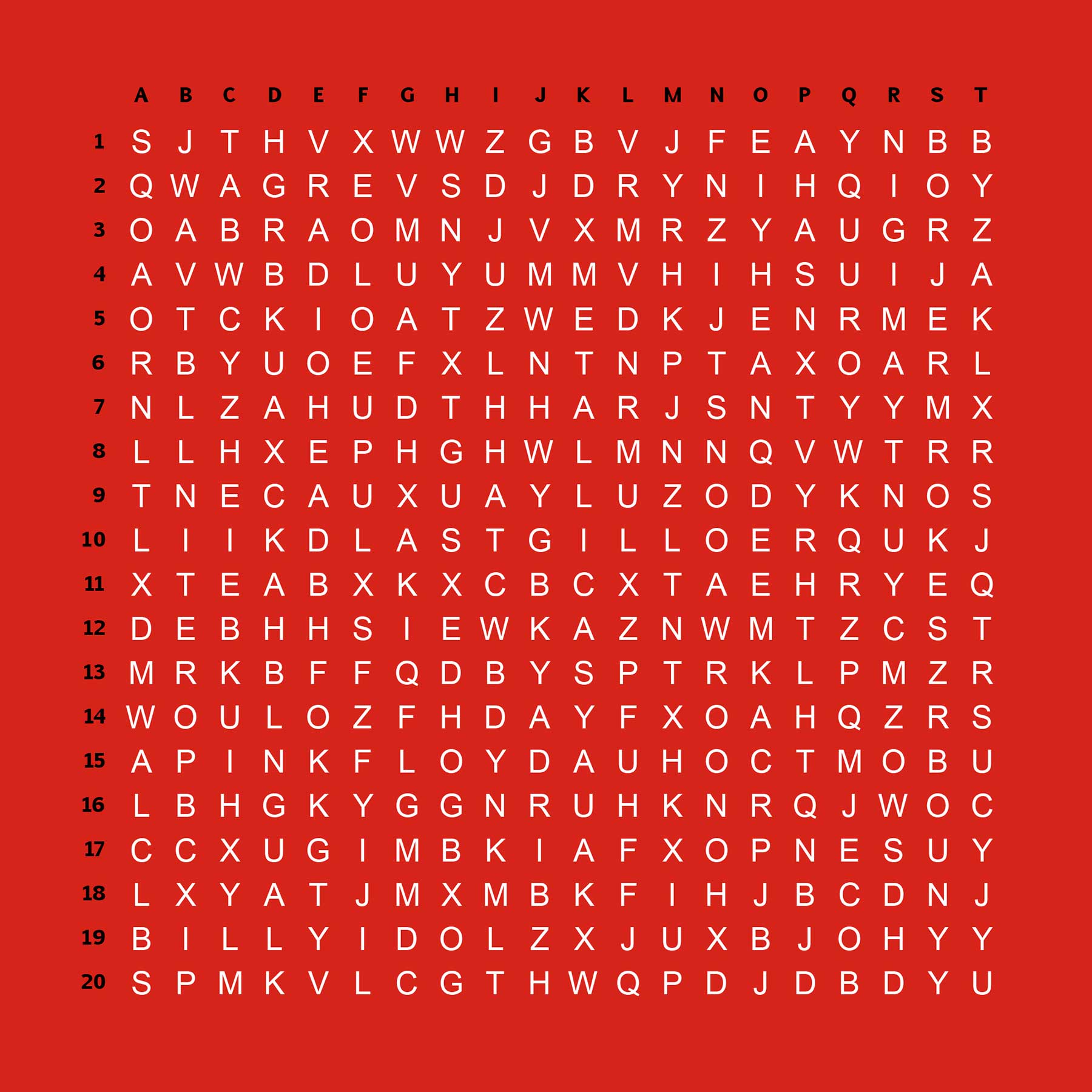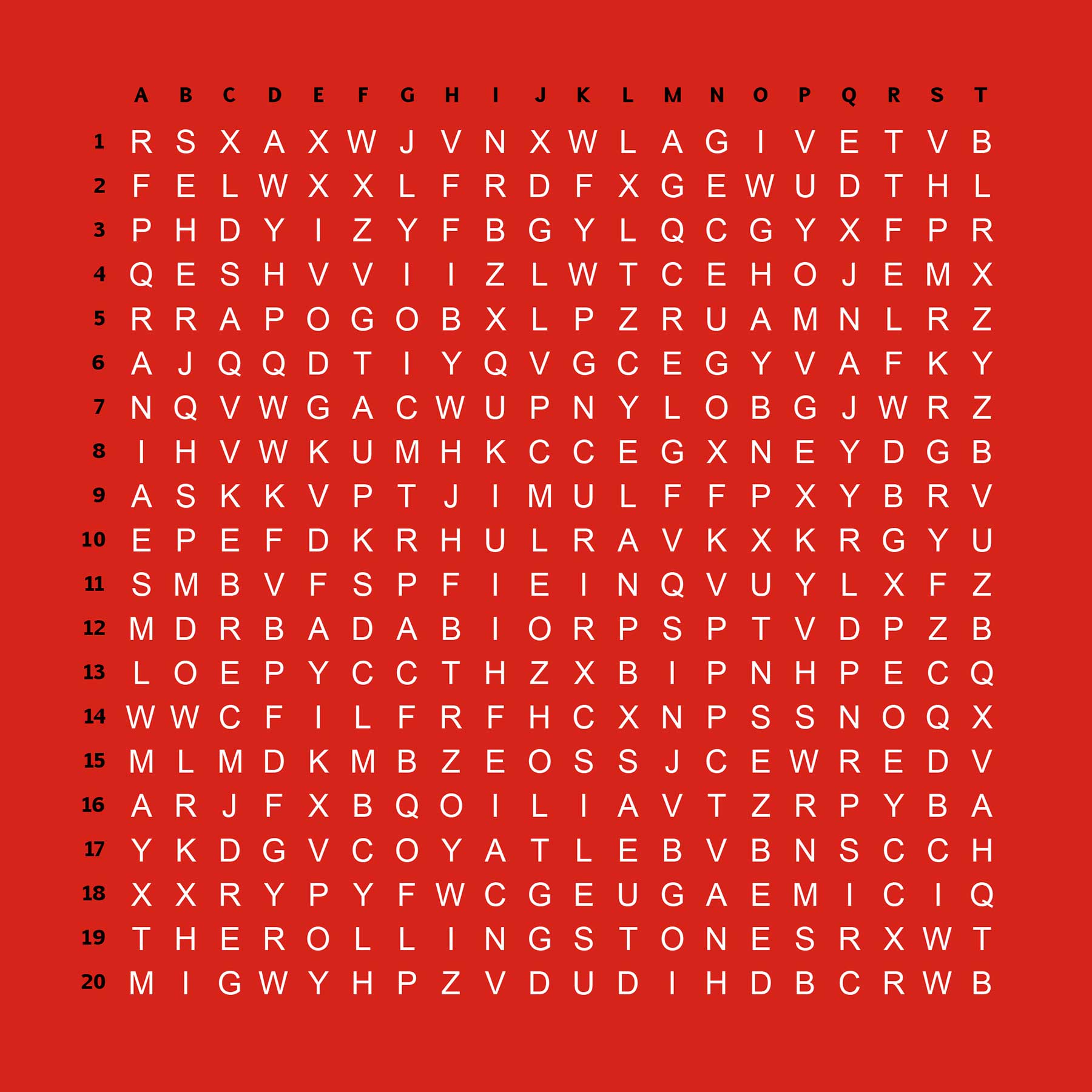 Das Prinzip sollte eigentlich altbekannt sein, oder? Der „Buchstabensalat“ oder auch die „Wortsuche“ – wie auch immer ihr es nennen mögt. Jedenfalls ein Gitter voll wirr zusammengesetzter Buchstaben, in denen sich richtige Worte mit Bedeutung „verstecken“. Dieses Mal eben Bands, bzw. auch hin und wieder Solo-Artists aus der Musikwelt.