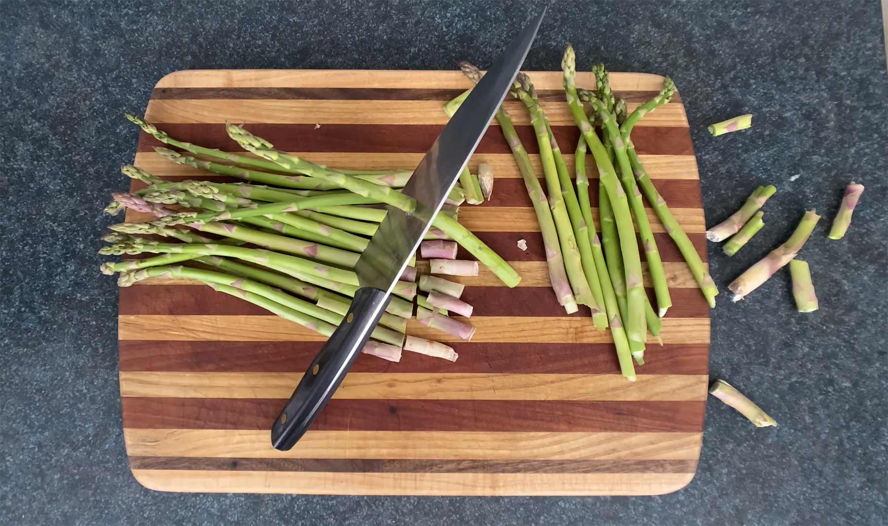 „Asparagus, while possibly the world’s most dangerous vegetable, has a quiet and peaceful disposition. Some say that baking the asparagus calms it’s temper but they are wrong. It was born calm.“