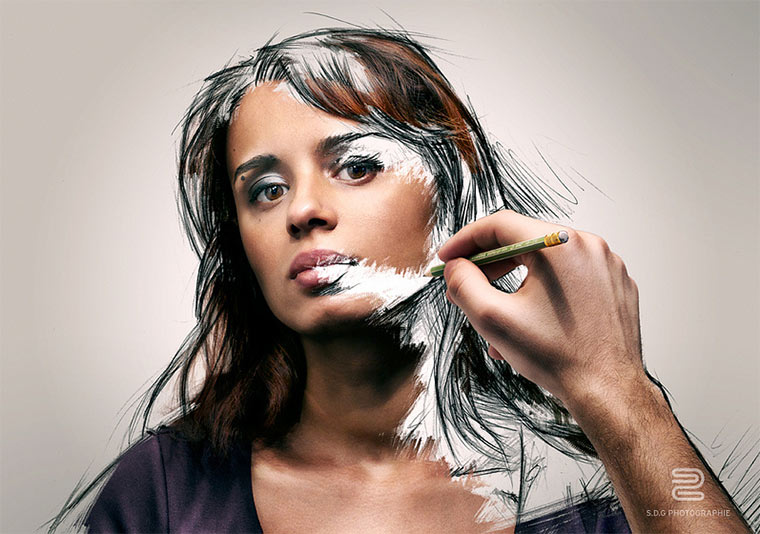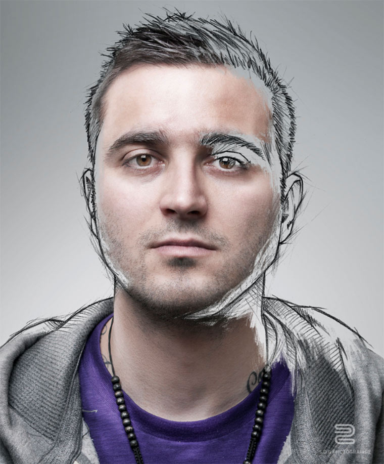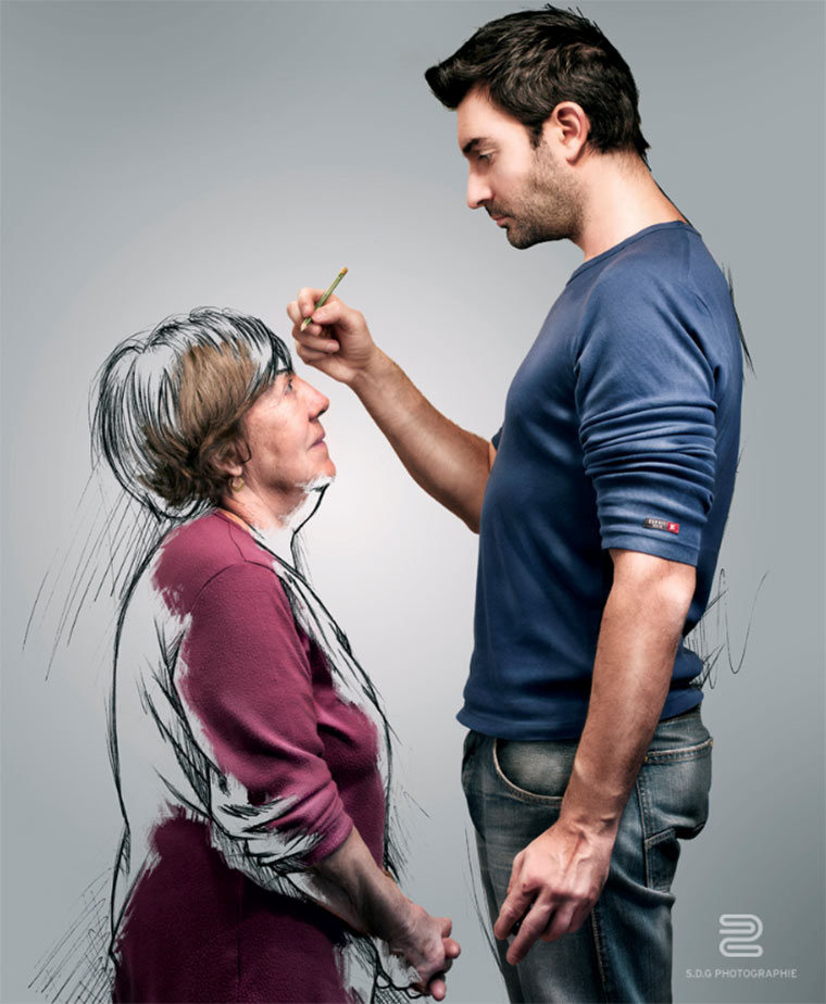 Natürlich sind die Fotos nicht unvollendet. In der Serie The Sketch of a Life zeigt uns Fotograf Sébastien Del Grosso jedoch, dass man durchaus Teile der Bilder mit gezeichneten Elementen ersetzen kann. Kreative Idee und sehr gute Umsetzung.