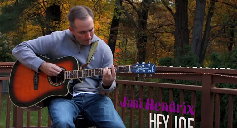 „I got a Fender T Bucket 300CE guitar for Christmas. I did not know anything accept a G Chord, C Chord, and a D Chord. I was determined to learn the guitar. For one year I practiced everyday and here is what happened. In the end I will teach guitar to my son.“