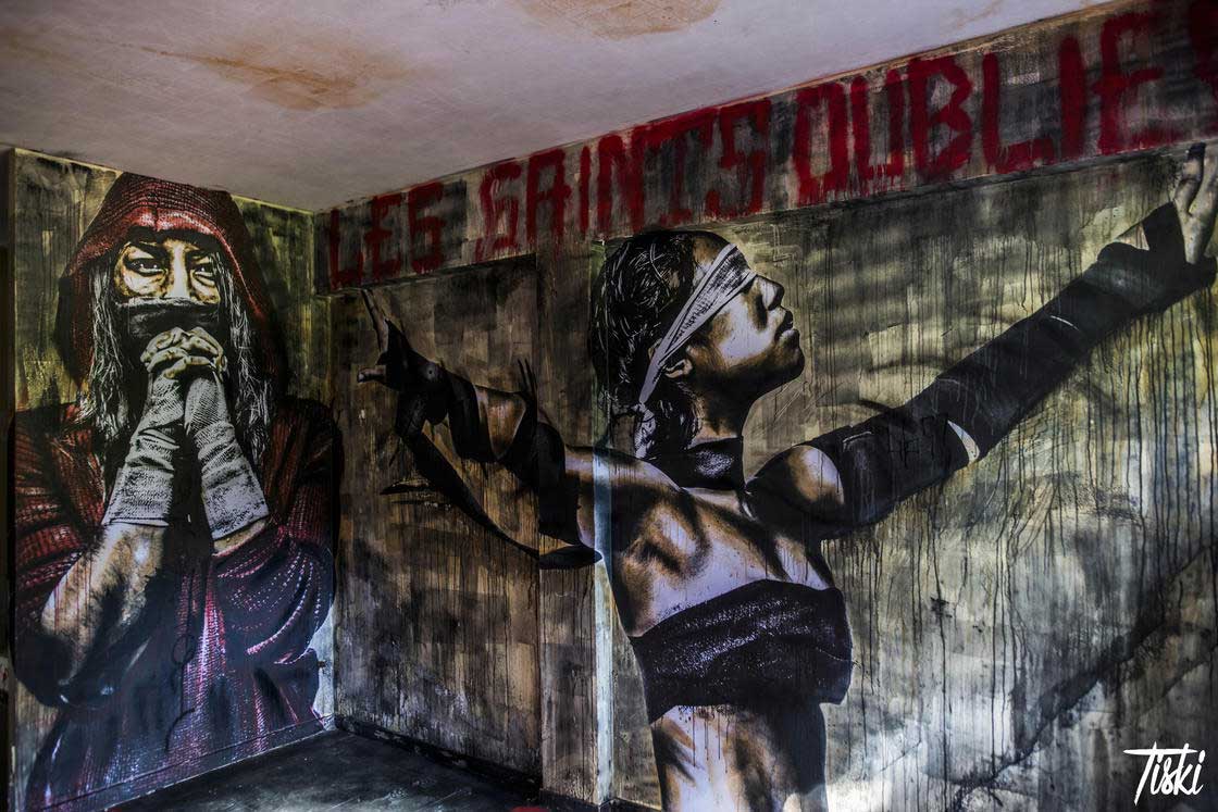 „100 Street Artists haben dieses Gebäude bemalt“ ist so ein bisschen das neue „Wir haben 100 Leute gefragt…“, oder? Ein kleiner aber feiner Street Art-Trend, der nach The Haus in Berlin und dem zuletzt hier im Blog vorgestellten Studentenhaus in Paris nun auch ein Schloss erreicht hat. Beim „LaBel Valette Festival“ haben 100 Street Artists ein Schloss, eine Kapelle und zwei Wohnhäuser mit insgesamt 10.000 Quadratmetern Wandfläche künstlerisch verschönert. Ich kann jedem empfehlen, solche inspirierenden Streifzüge unbedingt wahrzunehmen, so sich euch die Gelegenheit dazu ergeben sollte (was wohl im Frühjahr 2018 der Fall wäre)! Interessant ist hier auch, wie die Künstler mit dem teils identischen „T“-Raum umgegangen sind.