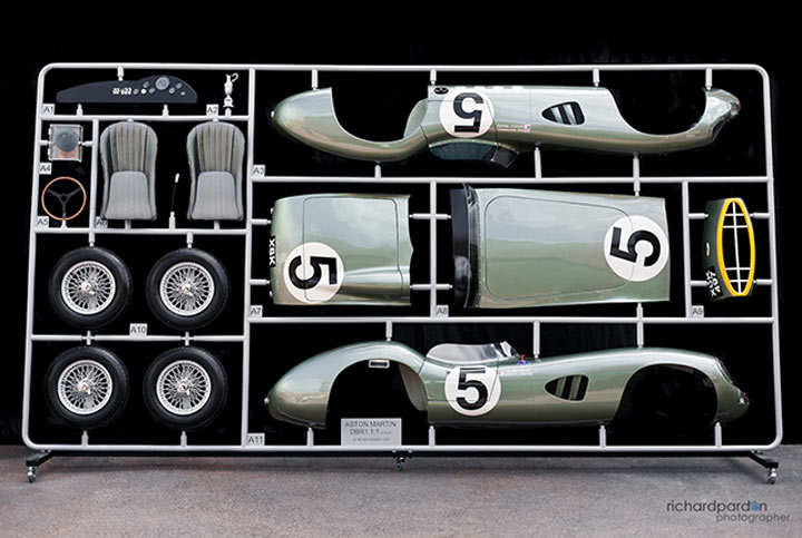 Geniales Teil: Ein 1:1 Nachbau des Aston Martin DBR1, der 1959 mit Caroll Shelby und Roy Salvadori am Steuer das Rennen von Les Mans gewonnen hat. Stilecht präsentiert mit Einzelteilen im Brechbaukasten. Das Set gibt es nur ein Mal und wird bei der Goodwood Revival für einen voraussichtlichen Preis von $31,286-$46,929 versteigert. Definitiv ein Sammlerstück!