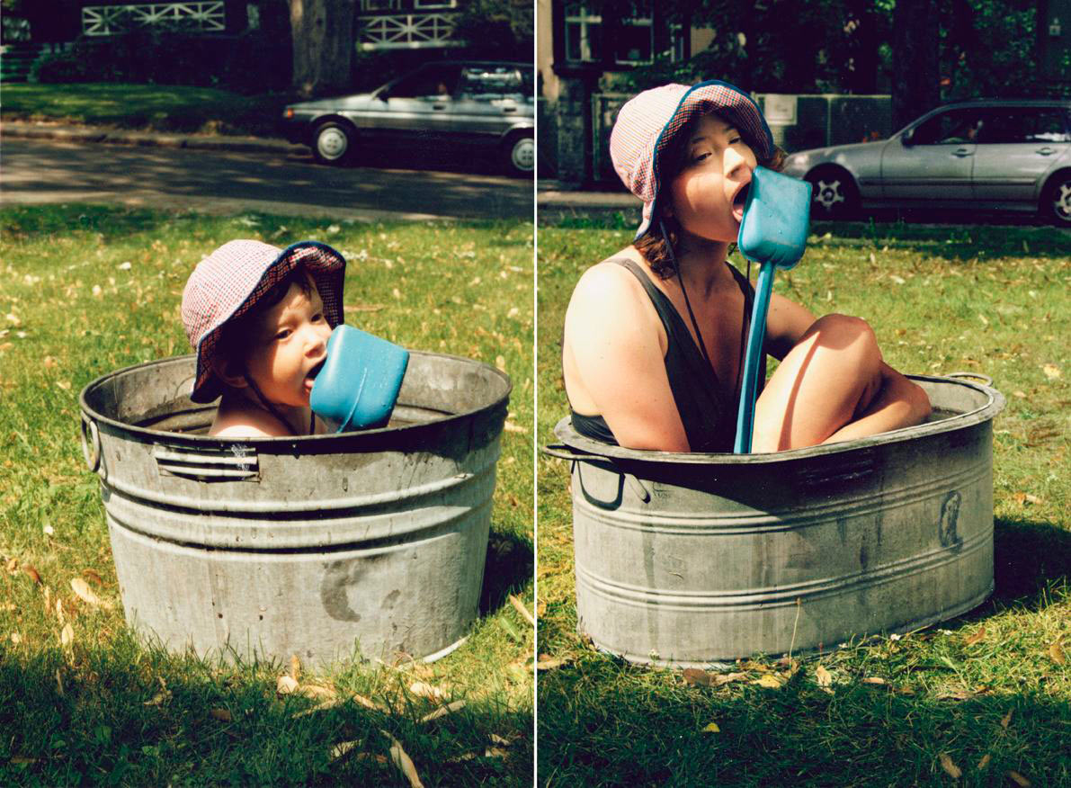 Die Bilder der argentinischen Fotokünstlerin Irina Werning habt ihr sicherlich schon gesehen. Ich hatte sie bereits verlinkt und auch schon ähnliche Fotos hier, z.B. in der Bilderparade. Ihr wisst bereits, was ich meine: Alte Bilder werden mit den selben Personen im Hier und Jetzt nachgestellt. So detailgenau wie möglich, was die obskure Situation schafft, dass alles gleich ist, nur das Alter der Person(en) nicht.