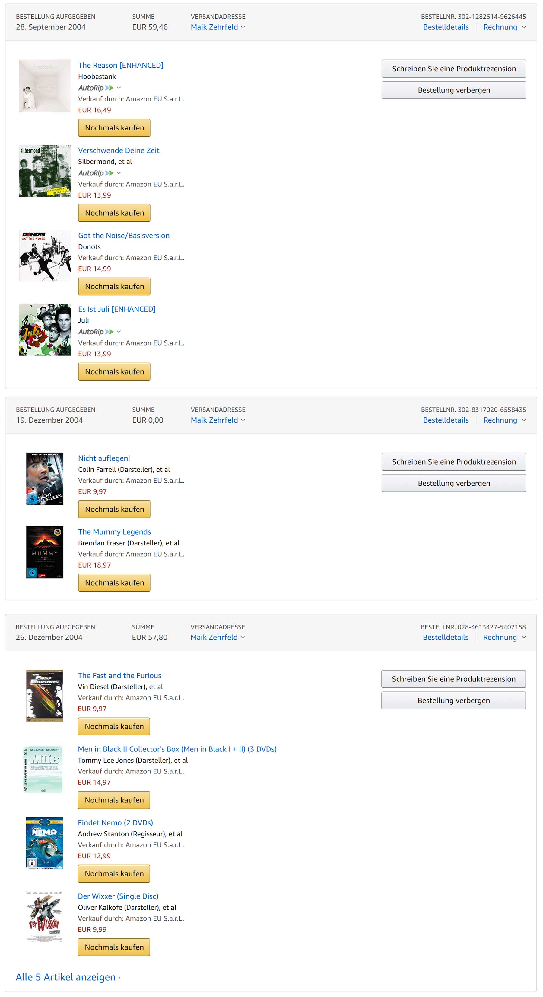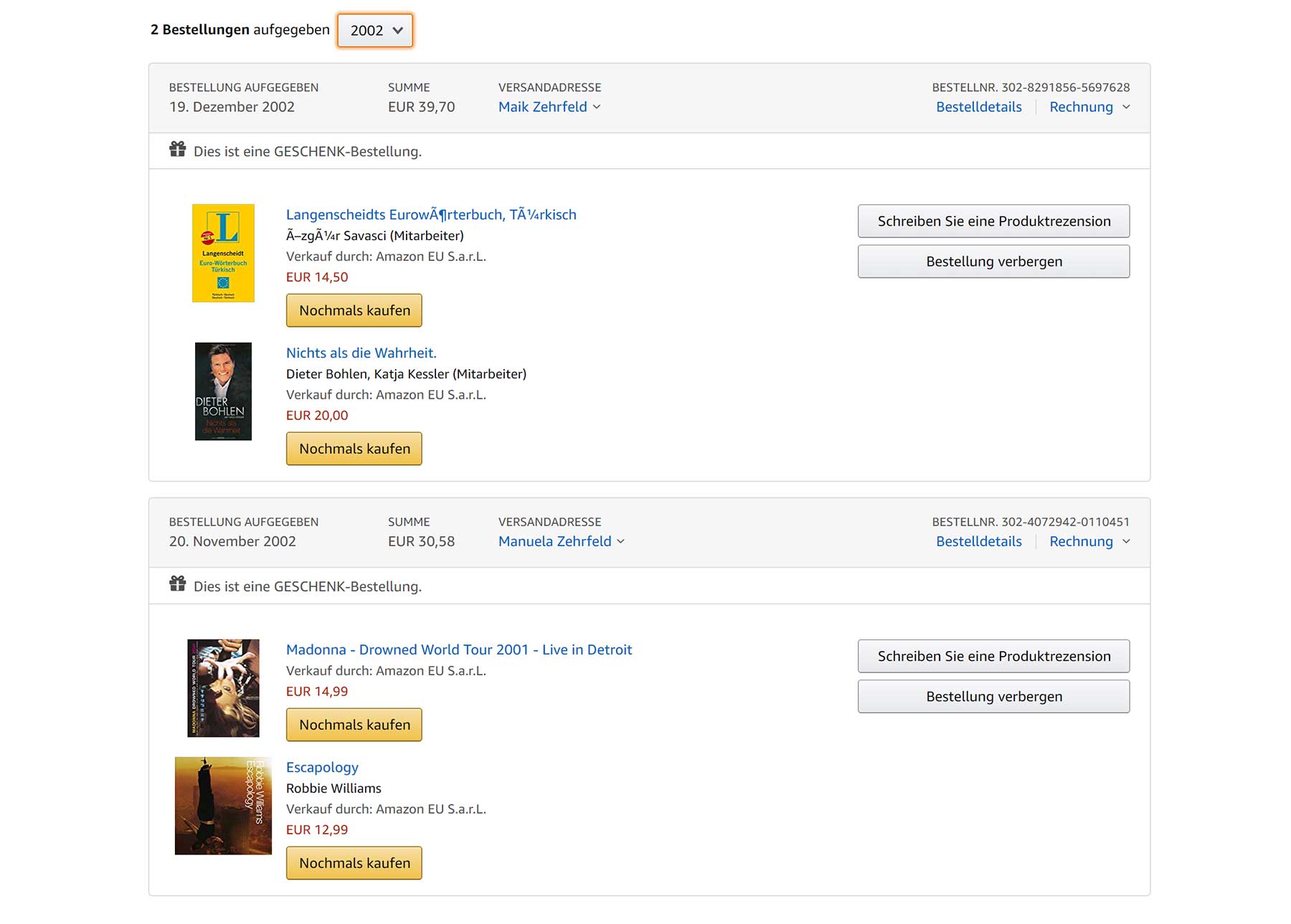 Habt ihr schon einmal einen Blick in eure Bestellhistorie gewagt? Wann war eure erste Amazon-Order und vor allem, was lag im virtuellen Warenkorb?