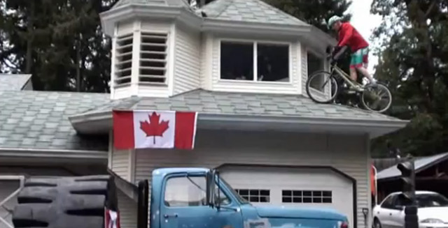 John Webster bewirbt sich bei Canada’s Got Talent mit einer kleinen Radtour um sein auf seinem Haus. Klingt komisch, ist es auch. Wunderbare Balance und Radbeherrschung.
